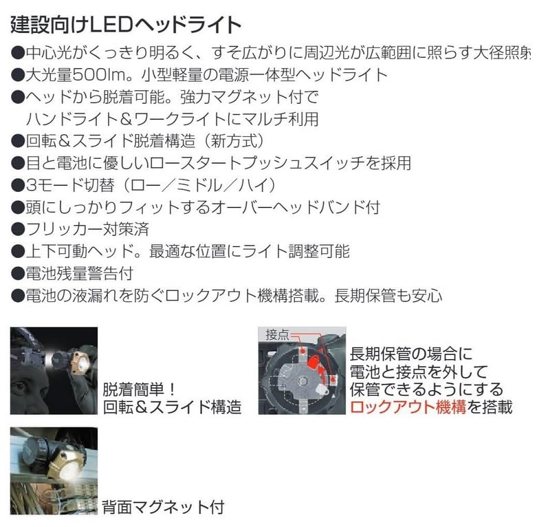 電源一体型LEDヘッドライト。ヘッドから脱着可能。強力マグネット付でハンドライト&ワークライトにマルチ利用。