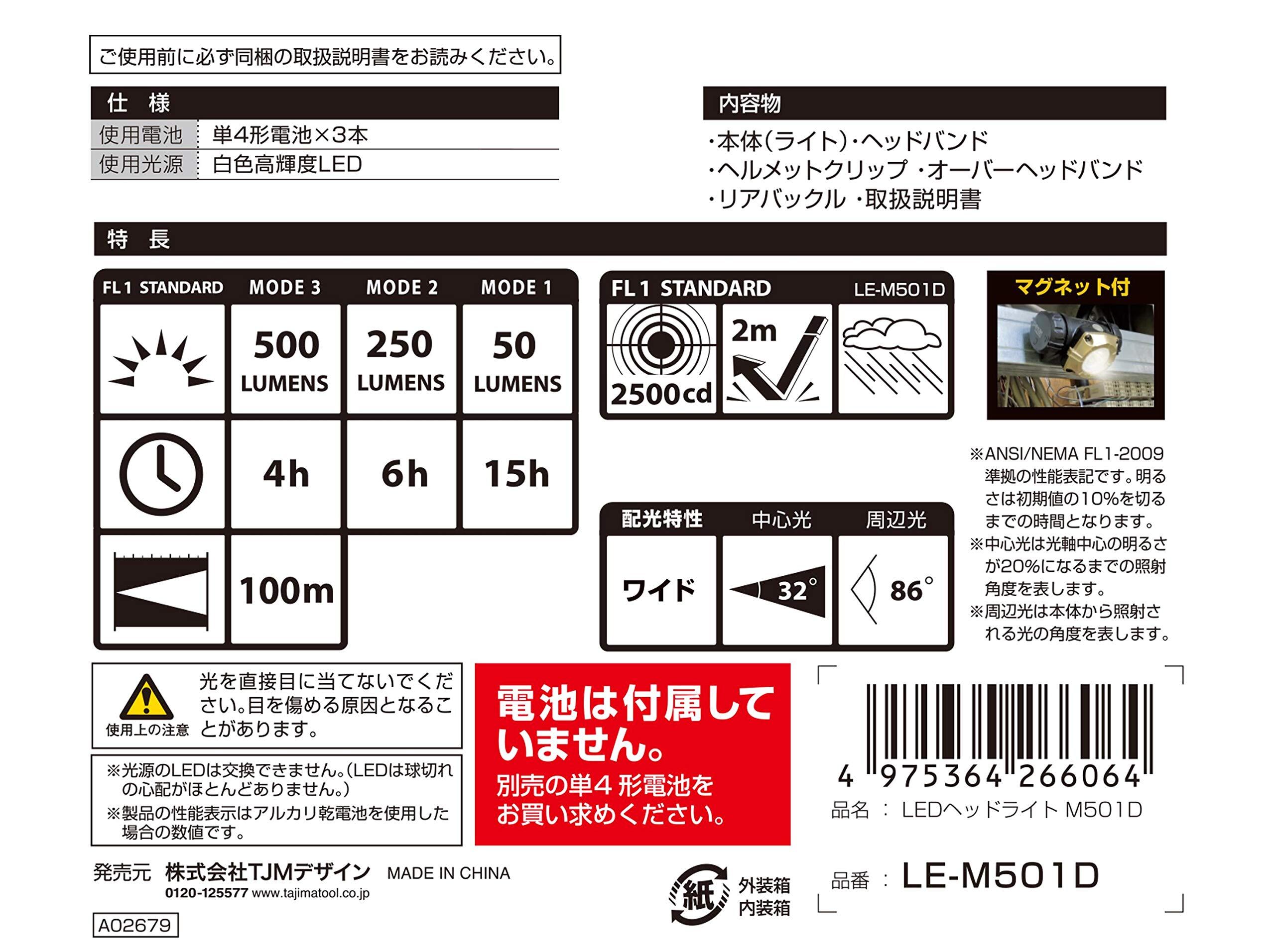 TJMデザイン(TJM Design)タジマ(Tajima) LEDヘッドライト M501D 明るさ最大500ルーメン LE-M501D