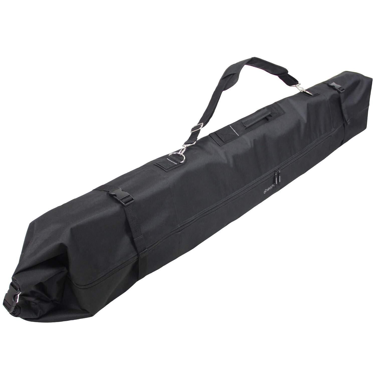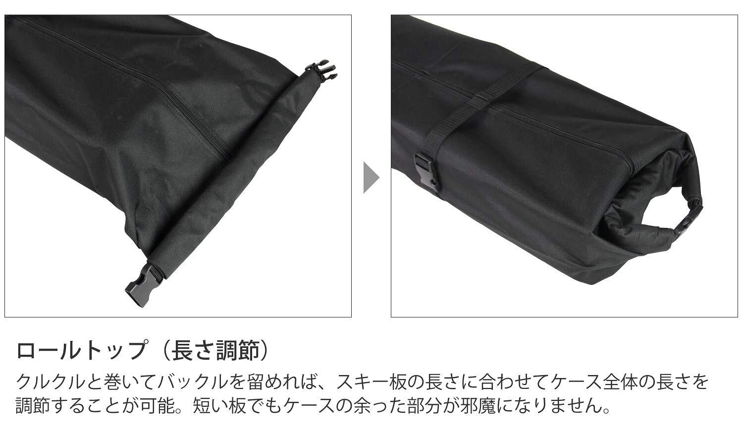 長さ調節が可能なロールトップ式のスキーケース(1台用)。