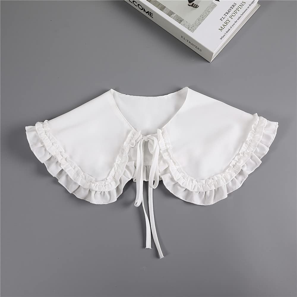 付け襟 レディース シャツ襟 ブラウスつけ襟 重ね着 レイヤード ビッグ セーラー 丸襟 フリル リボン 肩かけ フェイク衿 無地 大人 可愛い トレンド オシャレ
