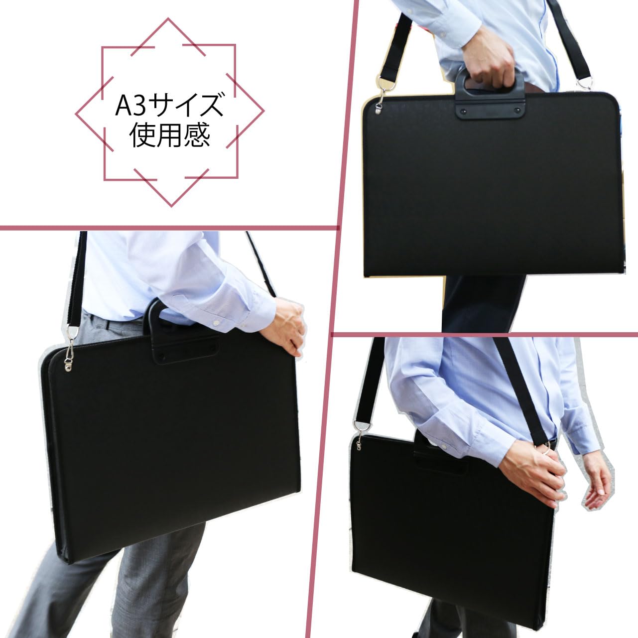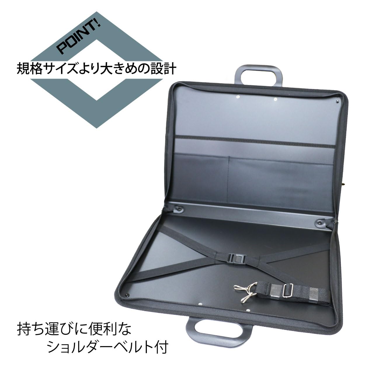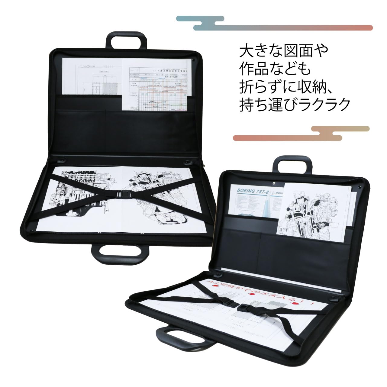 大きな作品・版下・図面も折らずに収納。持ち運びもラクラク。
