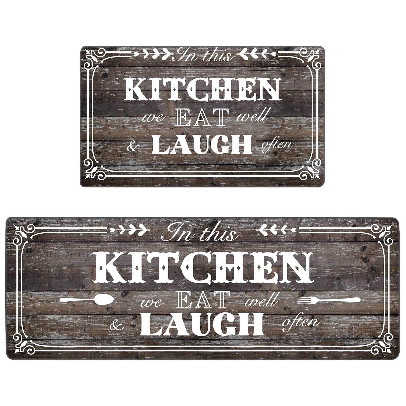 GIFT GARDEN キッチンマット 拭ける 8mm厚さ 低反発クッション 44x75cm 44x120cm 長さ 踏み心地いい マット ブラウン セット 2枚