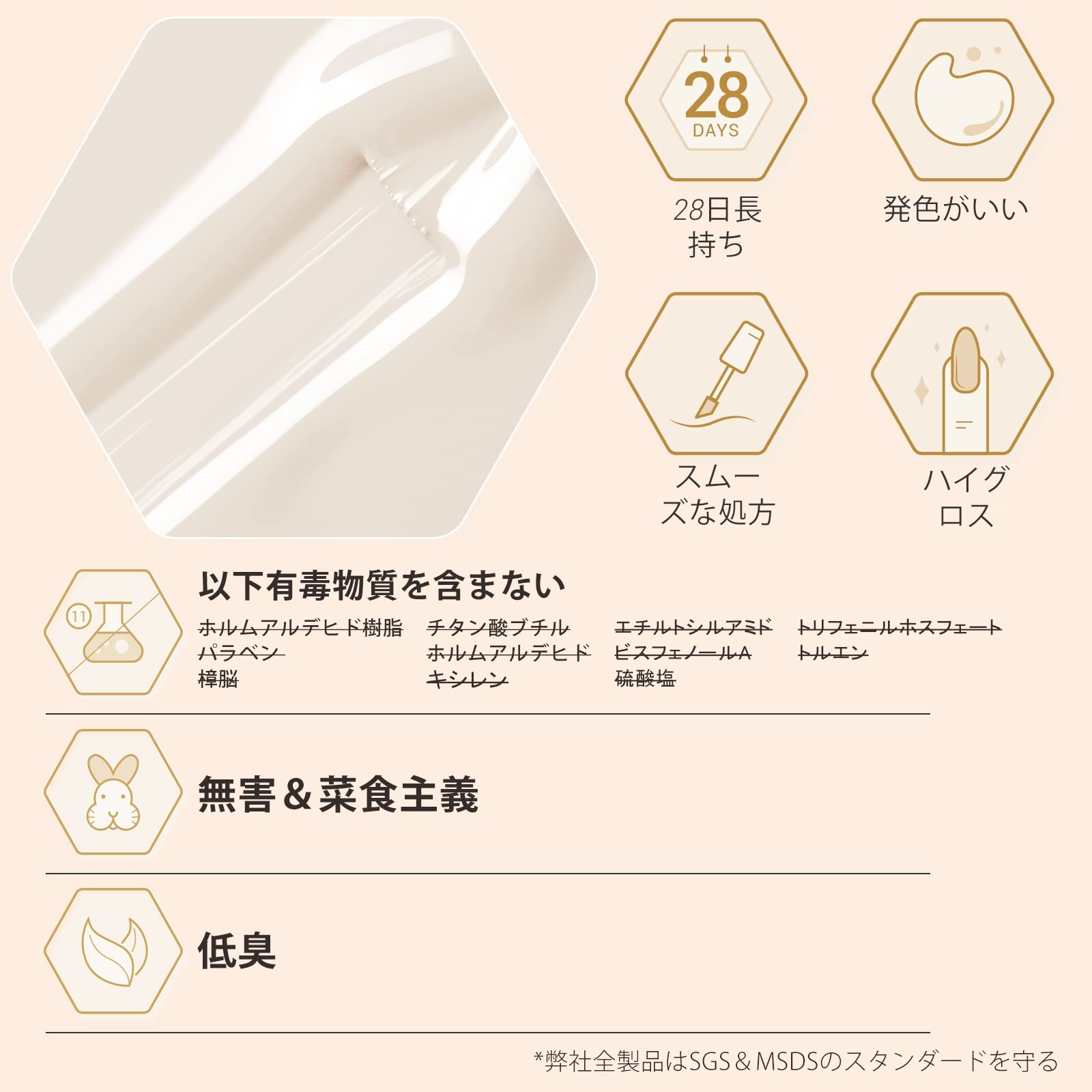 28日長持ち:正しく塗れば、約4週間長持ちすることができます。高い耐久性と強烈な色素を持つシロップジェルは、あなたに鮮やかな輝きのある仕上がり効果がもたらします。透明感がるジェルネイルで、重ね塗りすることで様々な効果が得られます