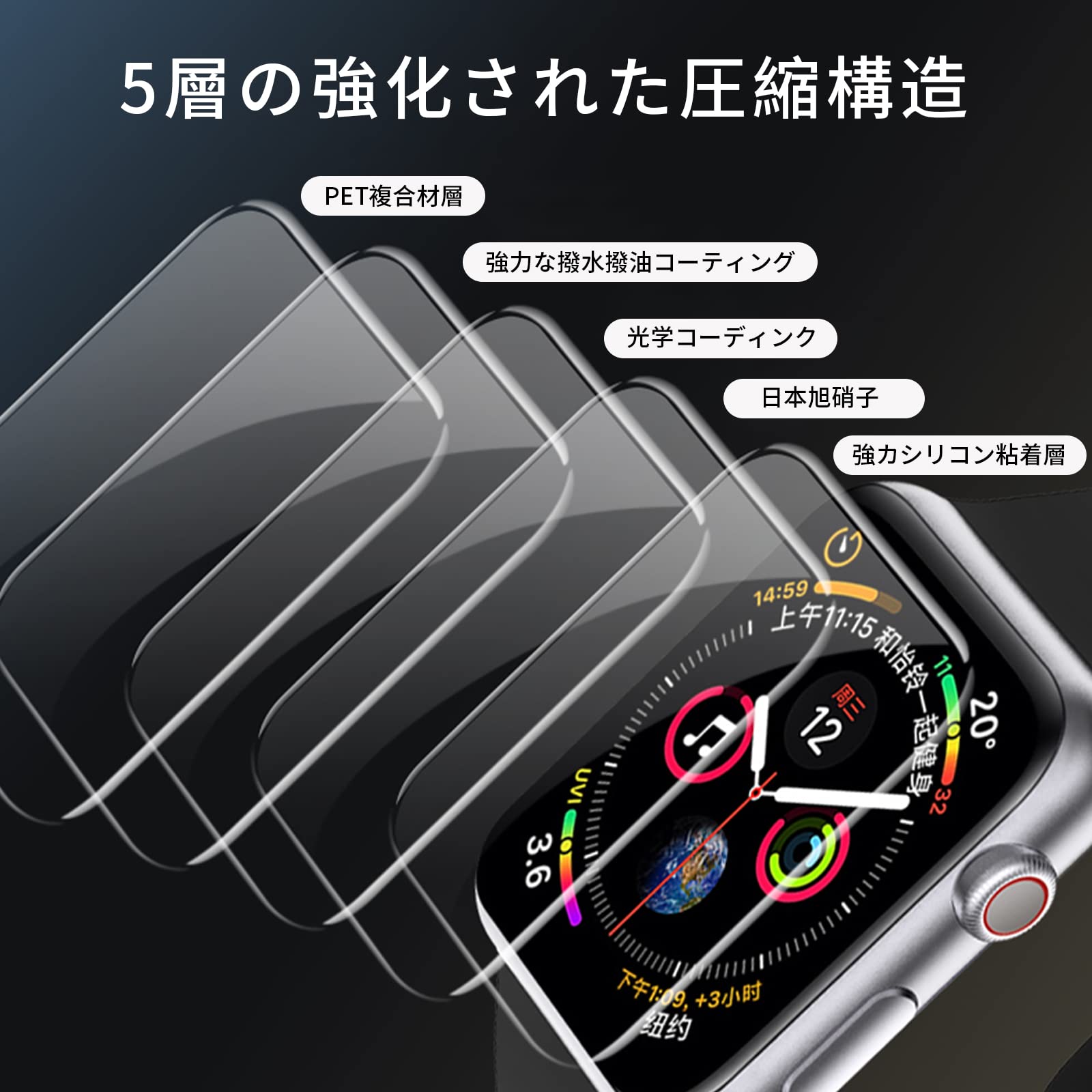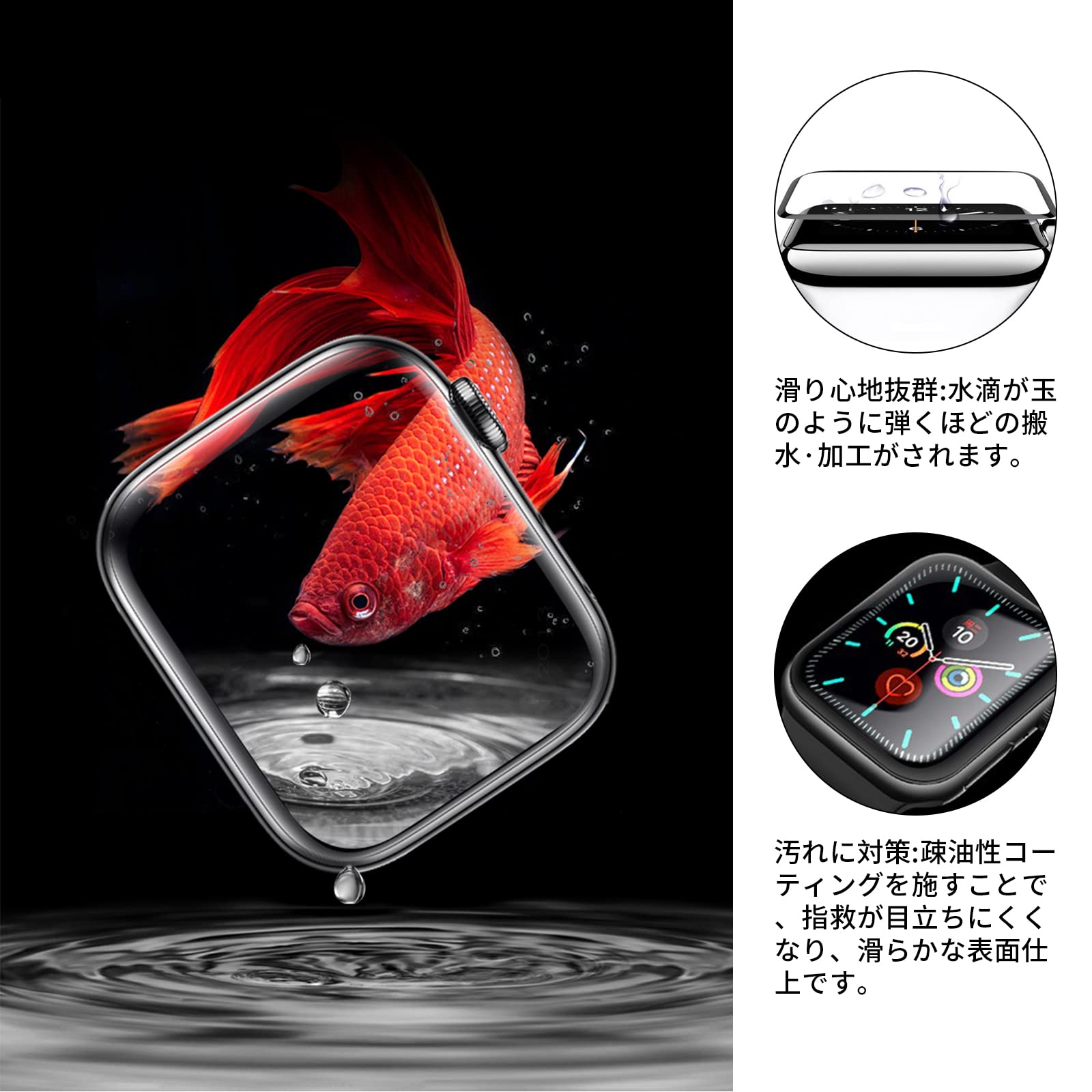 ☆高透過率&高感度タッチ: 高透過率を持つPET素材製、高い品質なPETで優れたタッチ感を実現します。透過率は99%超えるため、画面の視認性とタッチ感が優れ、液晶画面を鮮やかに彩ります、Apple Watch本来の美しさを損ないません。