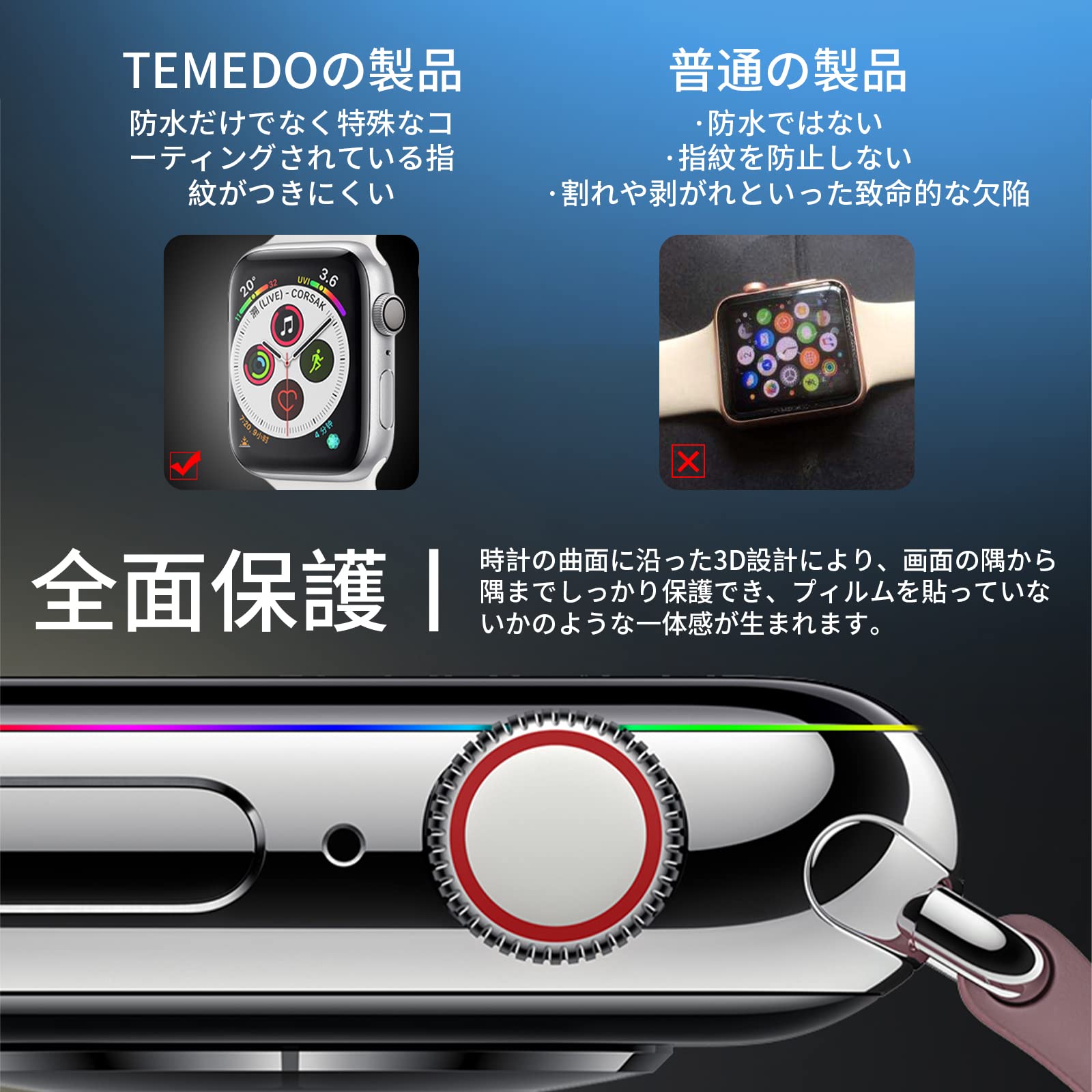 ☆3D全面保護:時計画面の曲面に沿った3D設計により、アップルウォッチへの衝撃を最小限に抑えます、設備を最大限に保護します。