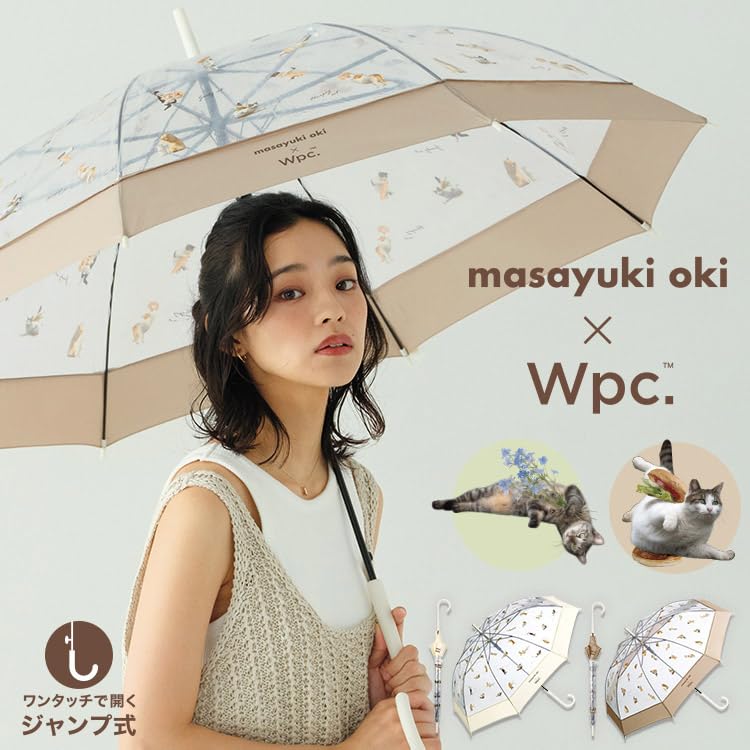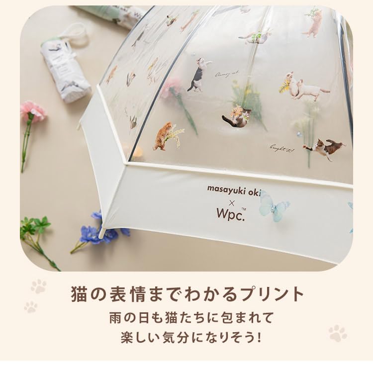 Wpc. [ビニール傘] 沖昌之×Wpc. プラスティックアンブレにゃん オフ 雨傘 長く使える 親骨61cm 大きい ジャンプ 撥水 レディース 猫 写真 おしゃれ 可愛い 映え 通勤 通学 女性 動物 どうぶつ基金 PT-OM05-001
