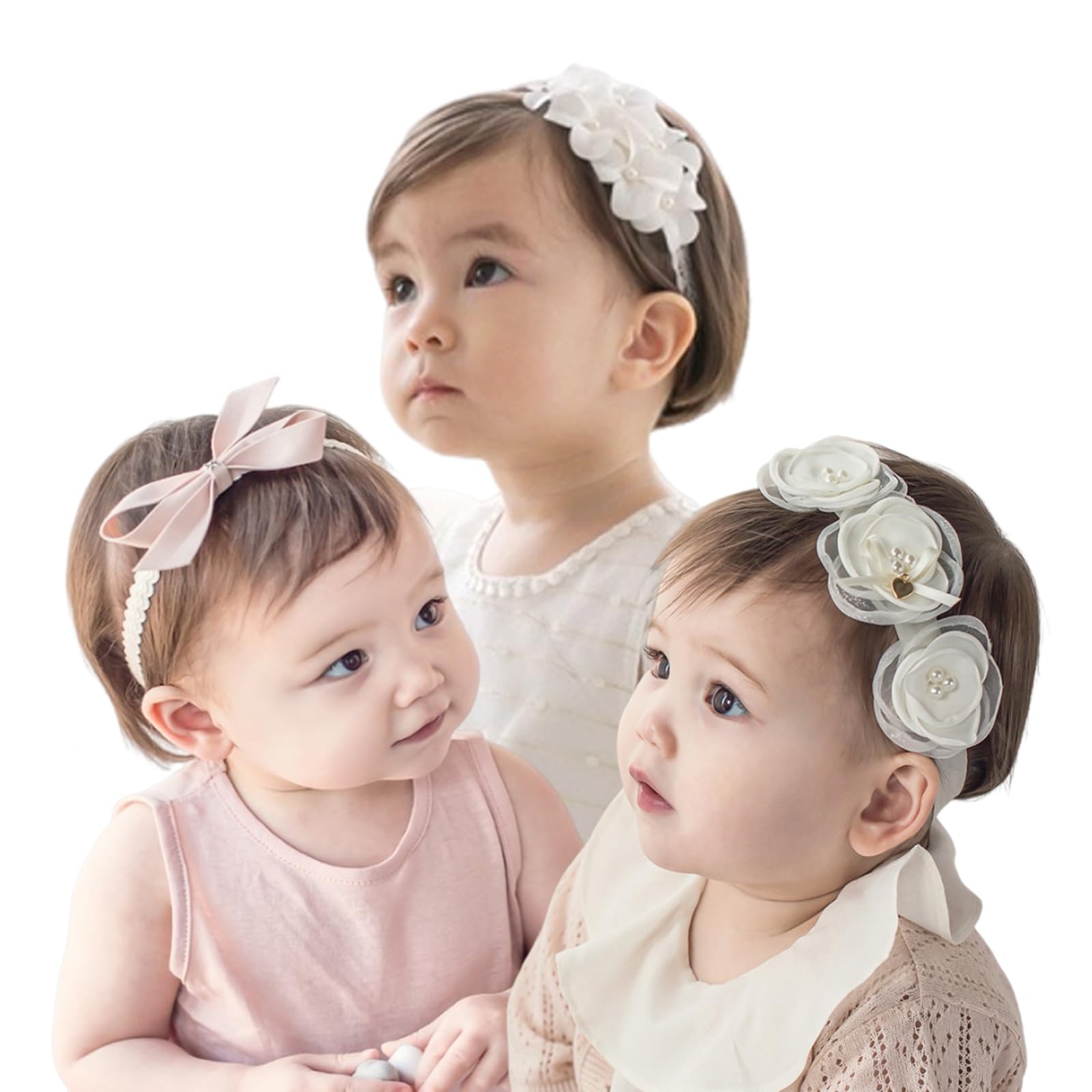 【費用対効果の高】新生児から使える可愛い赤ちゃんのヘアバンド3点セット、髪がまだ生えととのっていない時期でも、着用することでかわいくおしゃれにしてくれます。