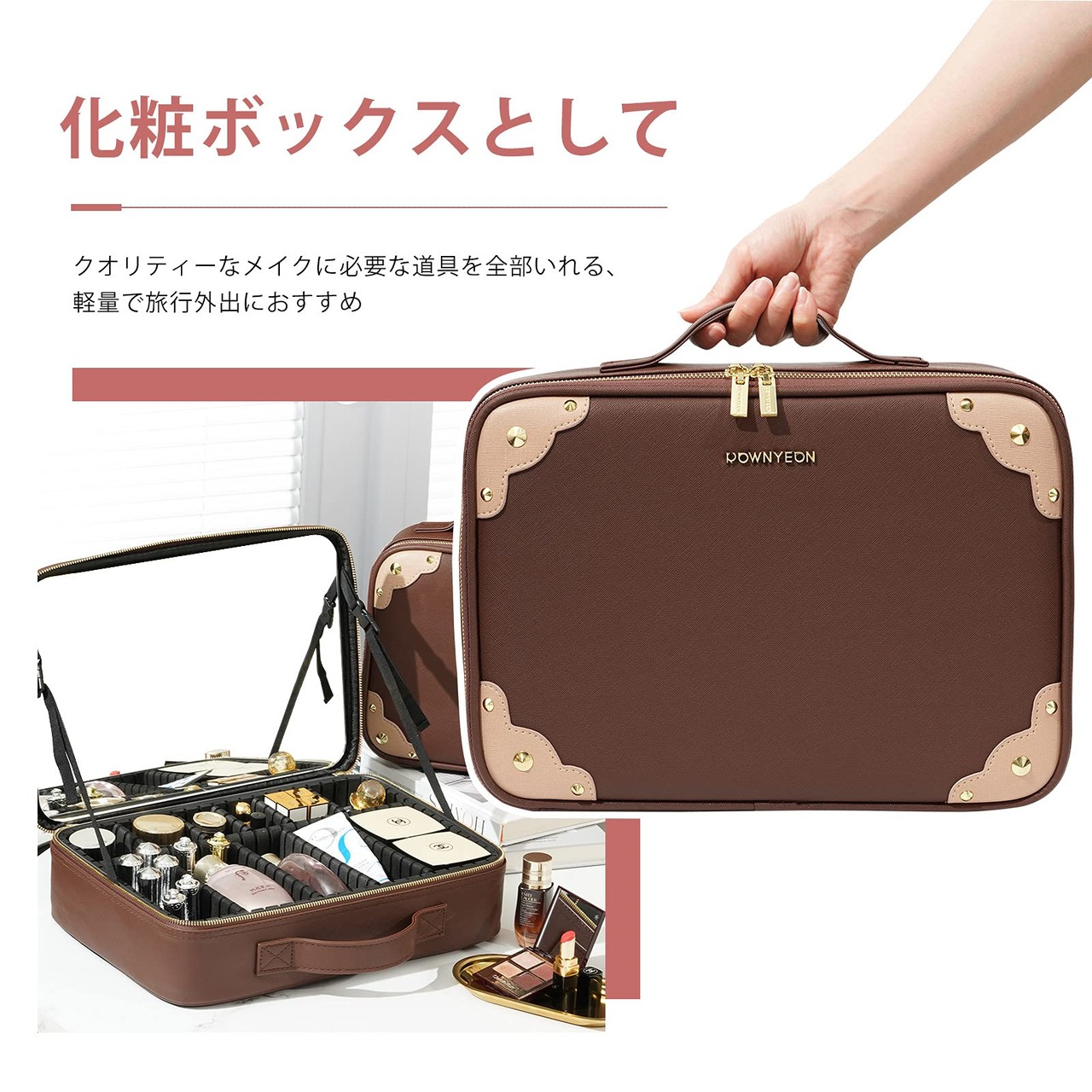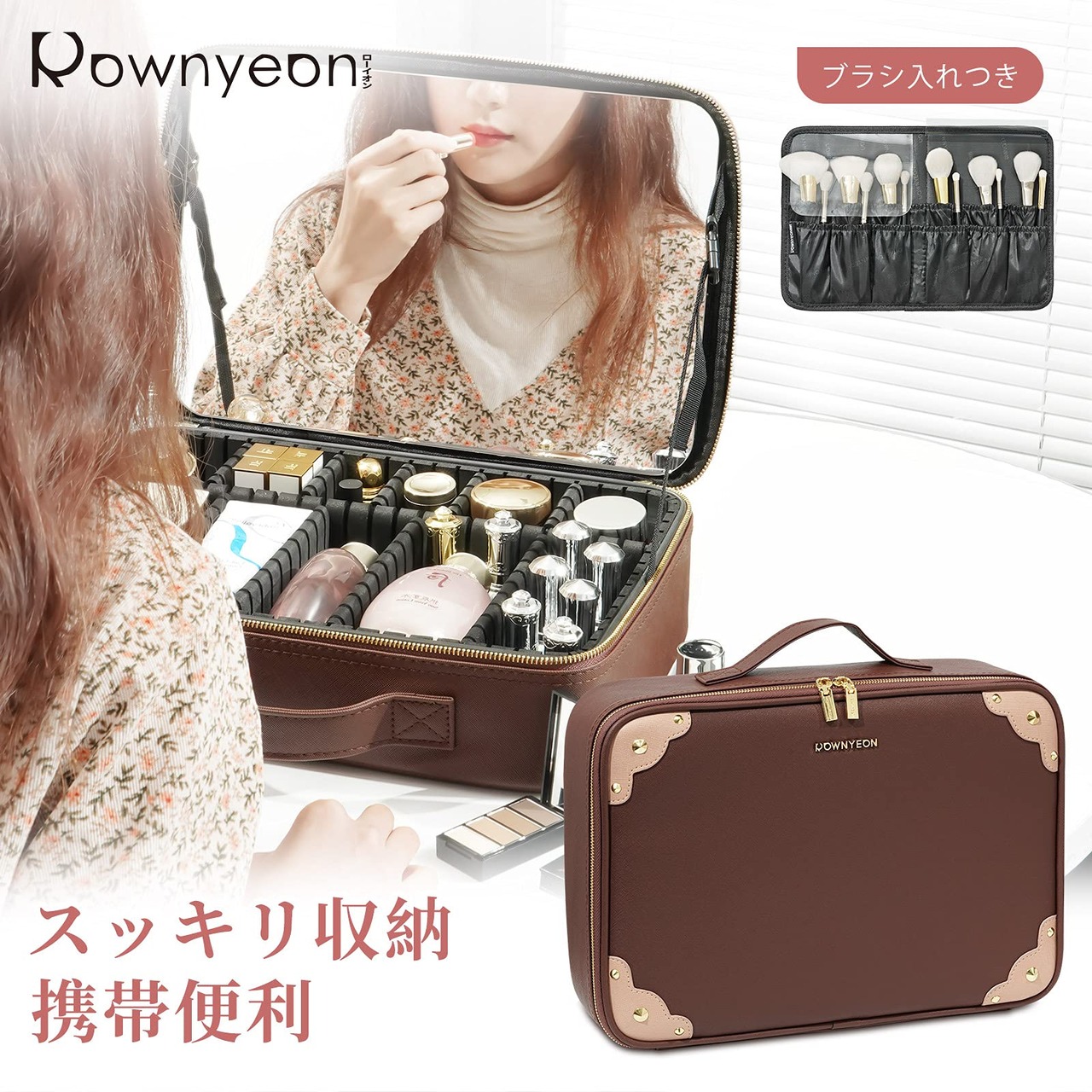 Rownyeon メイクボックス 大容量 鏡付き 取り外し可能 コスメボックス 化粧箱 化粧ボックス ミラーつき プロ仕様 ドレッサー ボックス メイク道具収納 大容量 ブラシいれ 仕切り 使いやすい 旅行 出張