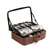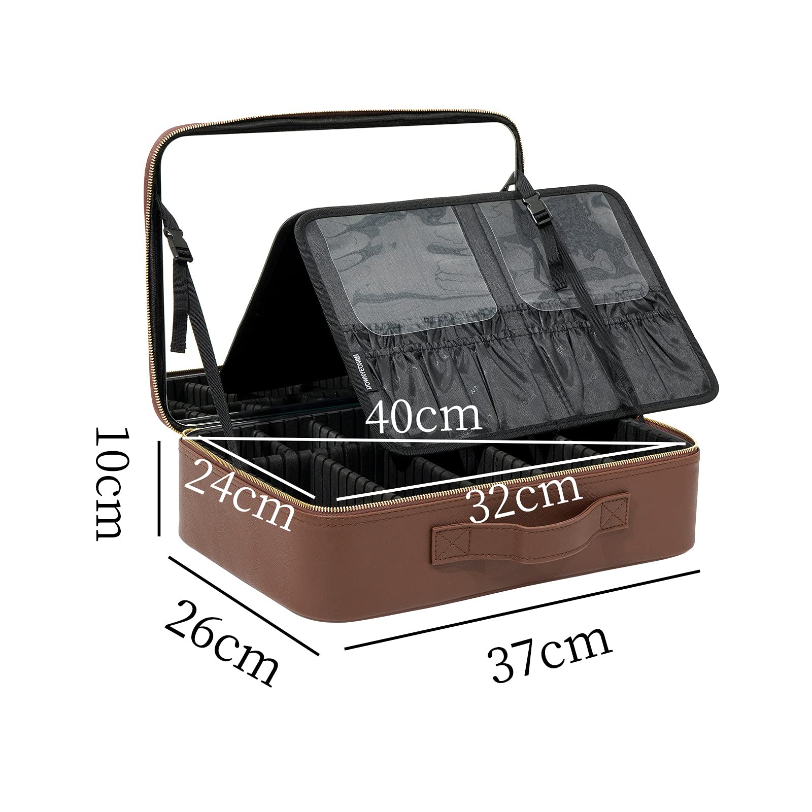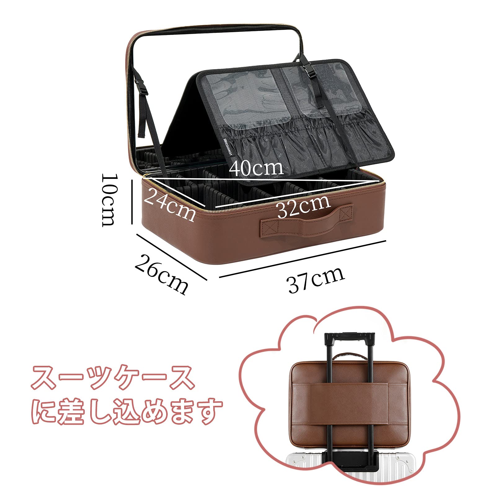 【一軍収納メイクボックス】約37x26x12cm、お手入れしやすいPuとナイロンを素材としています。