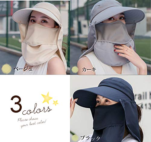 [supersakura] ガーデニング 帽子 農園帽 サンバイザー UVカット つば広 折りたたみ 紫外線対策 日よけ 首ガード おしゃれ帽子 フェイスカバー 農作業 園芸 アウトドア 釣り