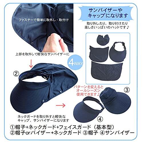 【ガーデニング 帽子 - 4wayタイプ】各パーツの着脱で4通りの使い方が可能です。 1.帽子+フェイスガード+ネックガード、2.帽子+ネックガード、3.帽子、4.サンバイザー 自由に組み合わせして使用できる4wayタイプ♪