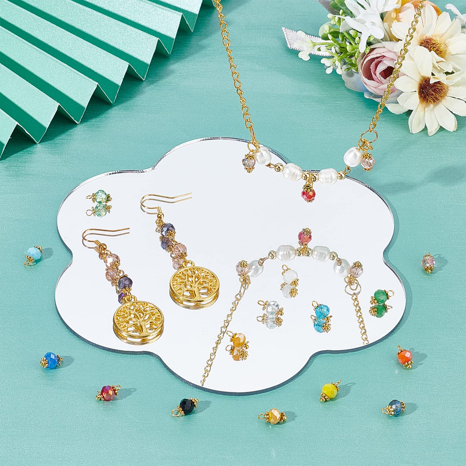 PandaHall 140個セット ガラスビーズ チャーム コネクタパーツ 7色 カラフル 切り面 カットビーズ ピアス イヤリングパーツ ジュエリー作り ネックレス ブレスレット アクセサリーパーツ 手芸 DIY用品 12×5.5mm