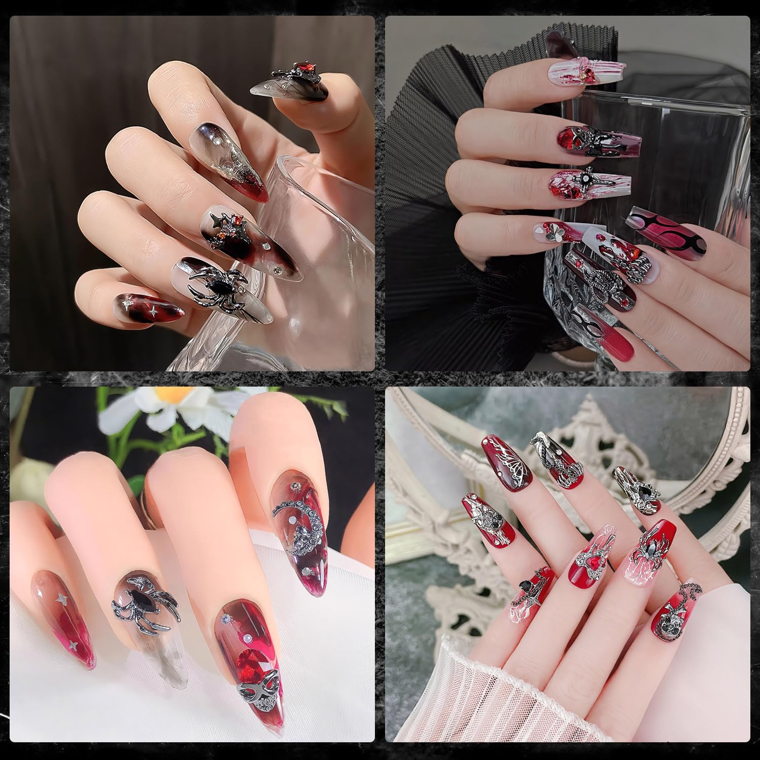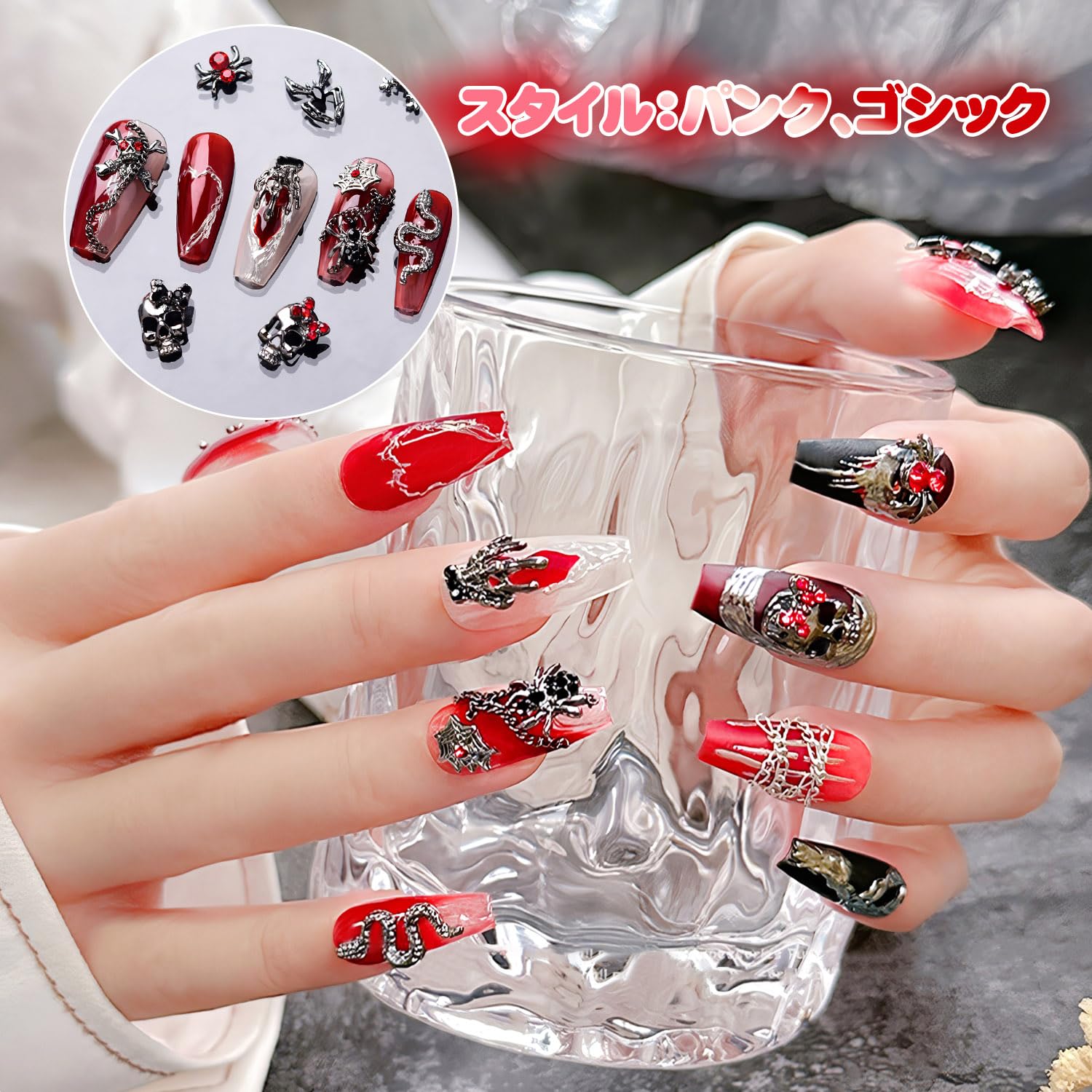 【幅広い用途】パンクやゴシック風も言うまでもなく、ハロウィンにとてもふさわしいです。日常的に他のスタイルに挑戦したい人にもおすすめです。ネイルパーツだけでなく、レジン、スマートフォンケースやアクセサリー、クラフト装飾などにも使用可能です