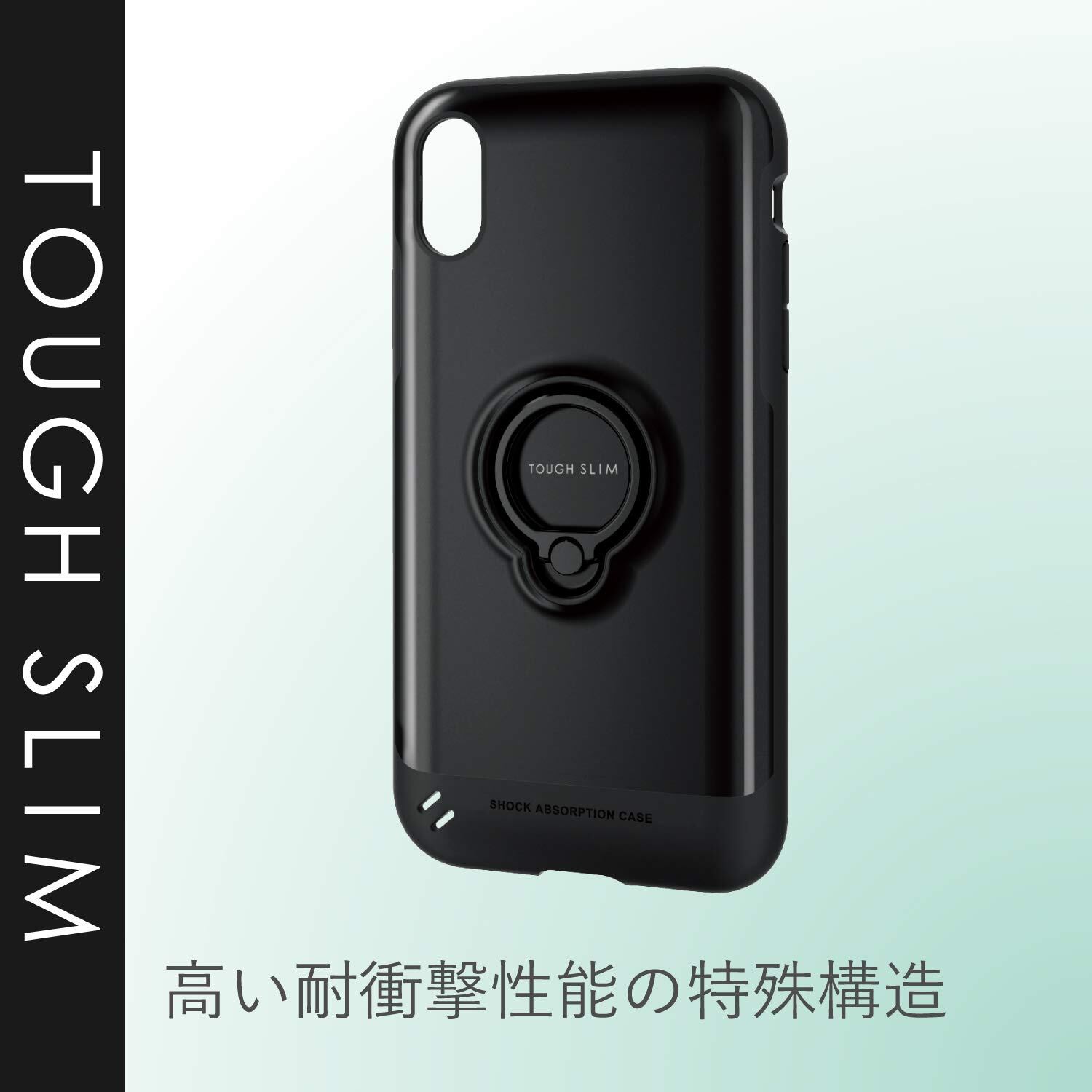 便利なフィンガーリング付きで、独自設計のエアクッションが効率的に衝撃を吸収する、薄くて軽い耐衝撃ケースiPhone2018/6.1インチ用TOUGH SLIM/リング付です。