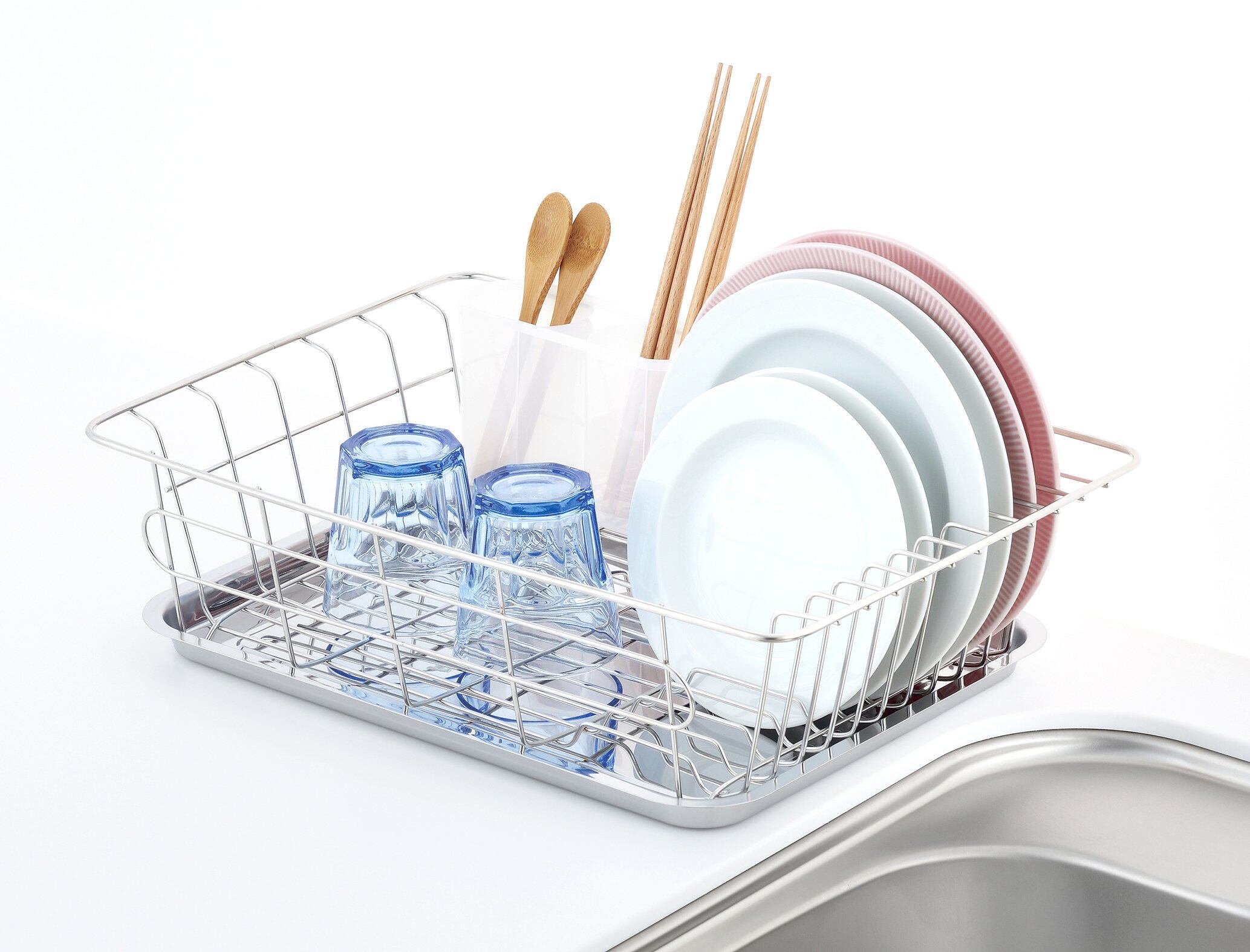 ●サビにくいステンレス製●お皿が立てられるディッシュスタンド付●自由に位置を変えられる小物ポケット付洗い終わった食器をコンパクトに収納