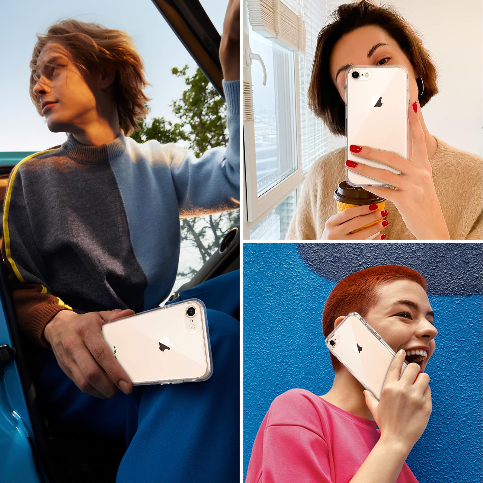 OWKEY iPhone SE ケース iPhone SE2 SE3 iPhone8 ケース【ガラスフィルム付き】黄ばみなし 米軍MIL規格 薄型 軽量 耐衝撃 レンズ保護 指紋防止 衝撃吸収 iPhone SE2/SE3/7/8 スマホケース 4.7インチ クリア(透明)