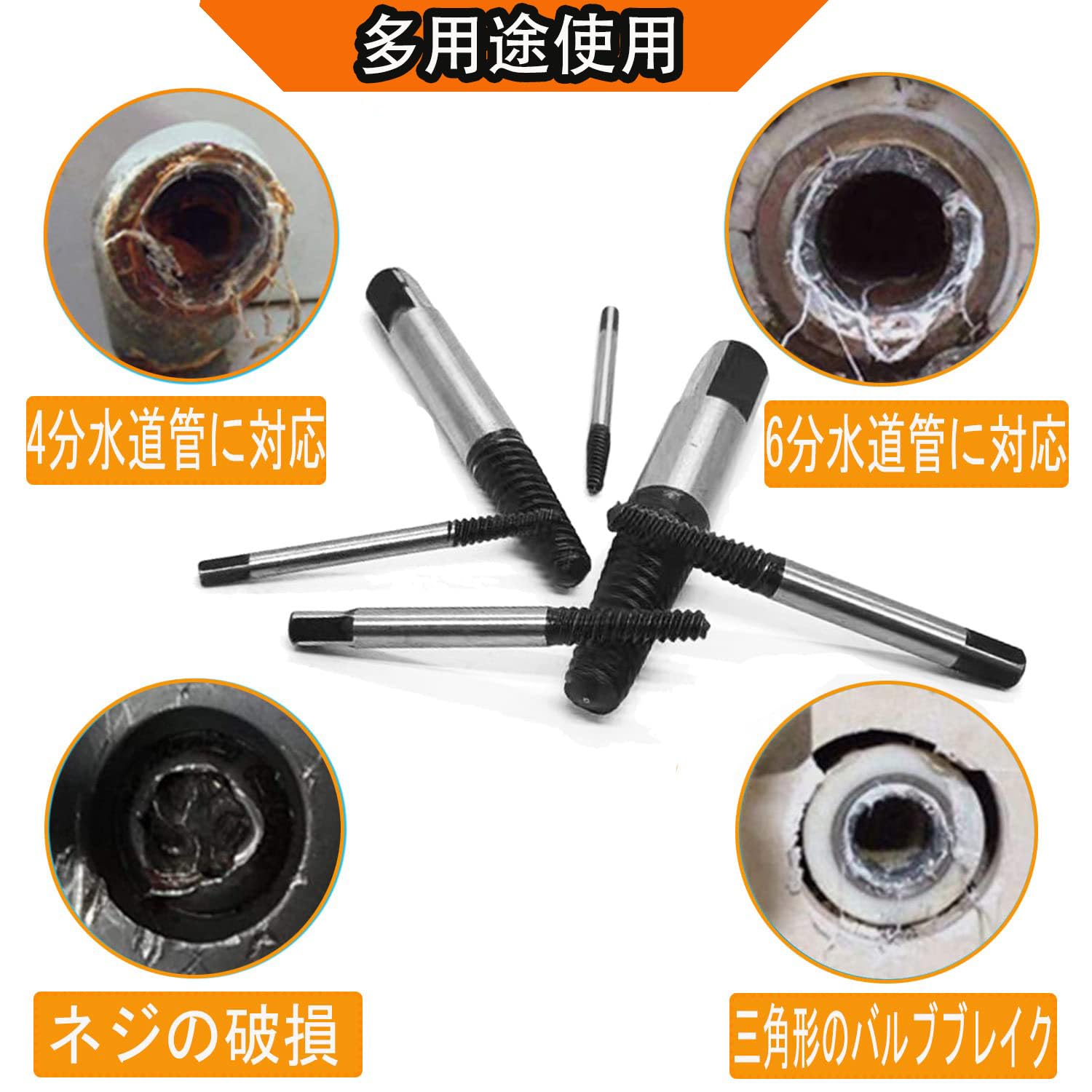 【四角いハンドルと深い幅広のネジ】水道管ネジ抽出器は四角い端のデザインを採用しており、レンチ、ペンチ、タップレンチ、または金型で抽出器を使用できます。急進的な左螺旋デザイン、取り外しが簡単な螺旋溝が埋め込まれています。それ自体に抵抗があり、グリップ力が向上します