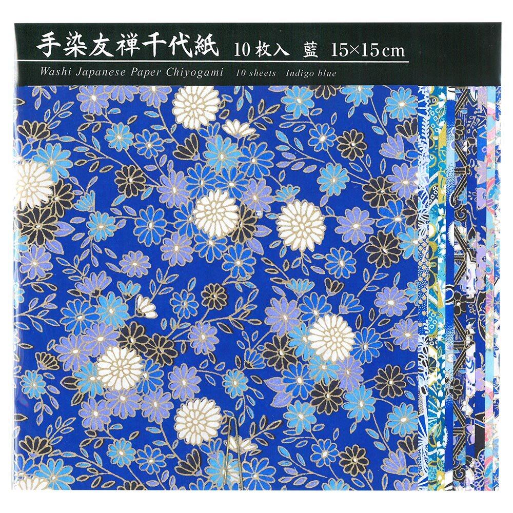 エヒメ紙工 和紙 手染友禅千代紙 藍 15cm角 10枚 TZM-5015A