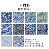 本格的な和紙を使用。和紙独特の柔らかさがありながら、適度に厚みのあるしっかりとした紙質で扱いやすい。藍色系のデザインのみを選んだ10柄セット。金色を使用しており、高級感のある風合いとなっている。裏面は白色。