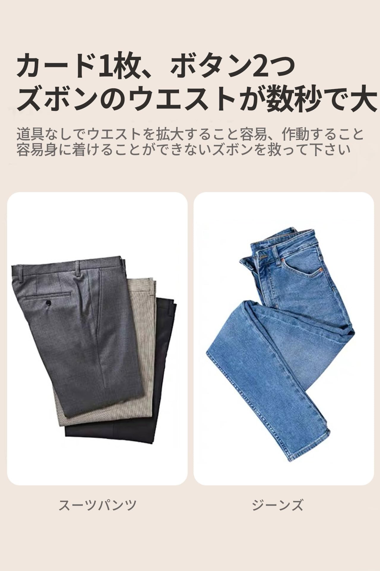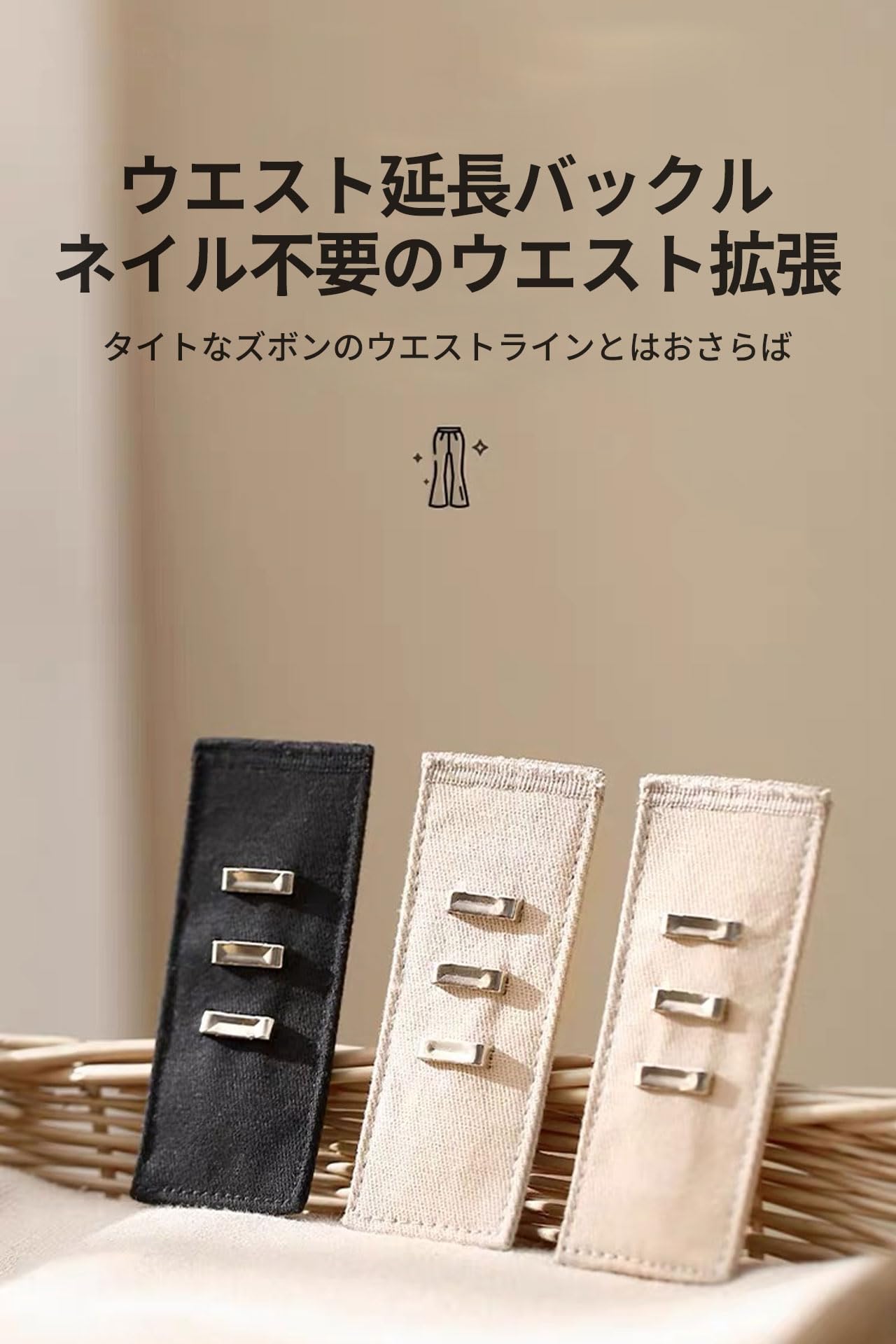 【適用性】ジーンズ、カジュアルパンツ、スーツパンツなど多くの種類のズボンやスカートに適しています。 ズボンのサイズ調整が必要な時にいつでも使用できます。