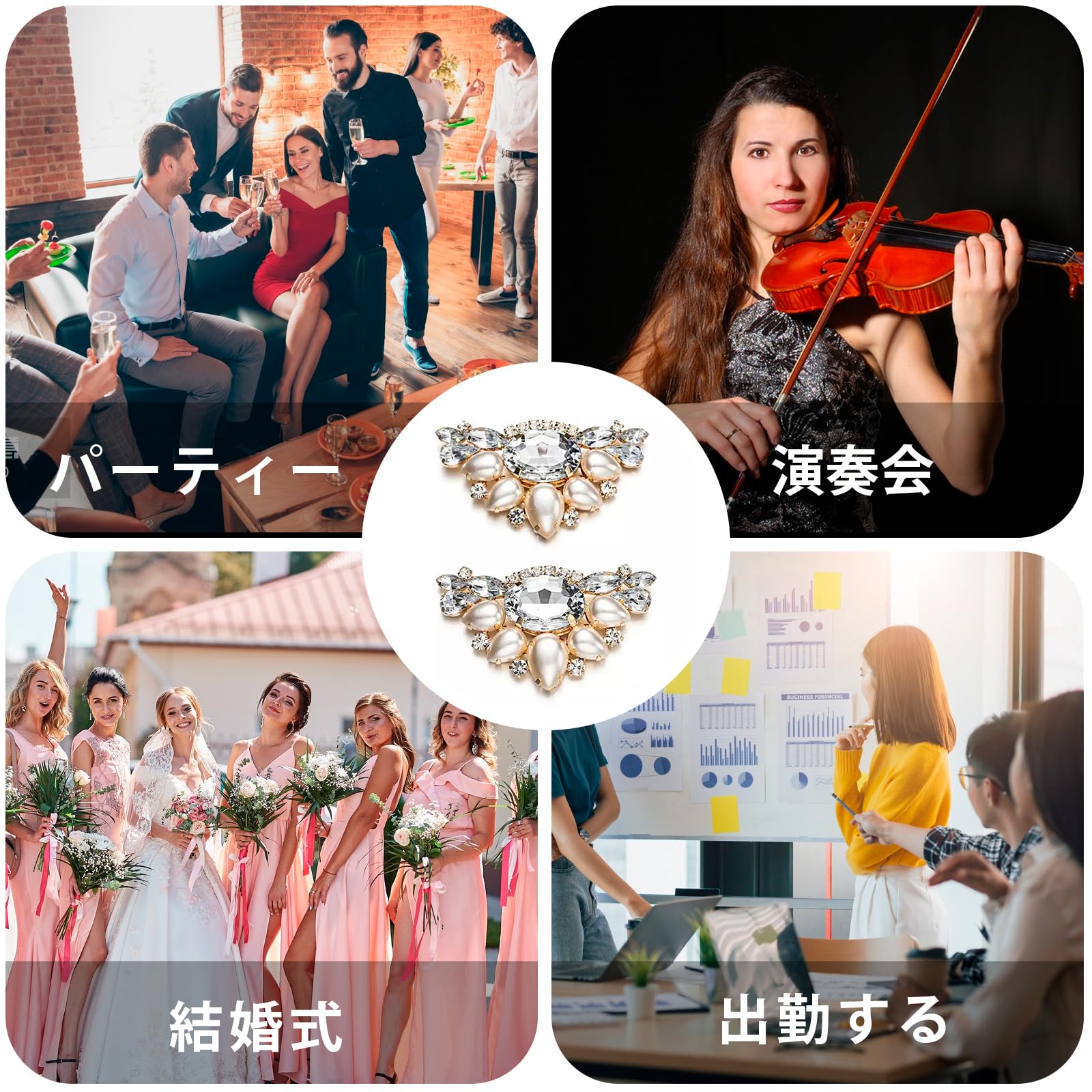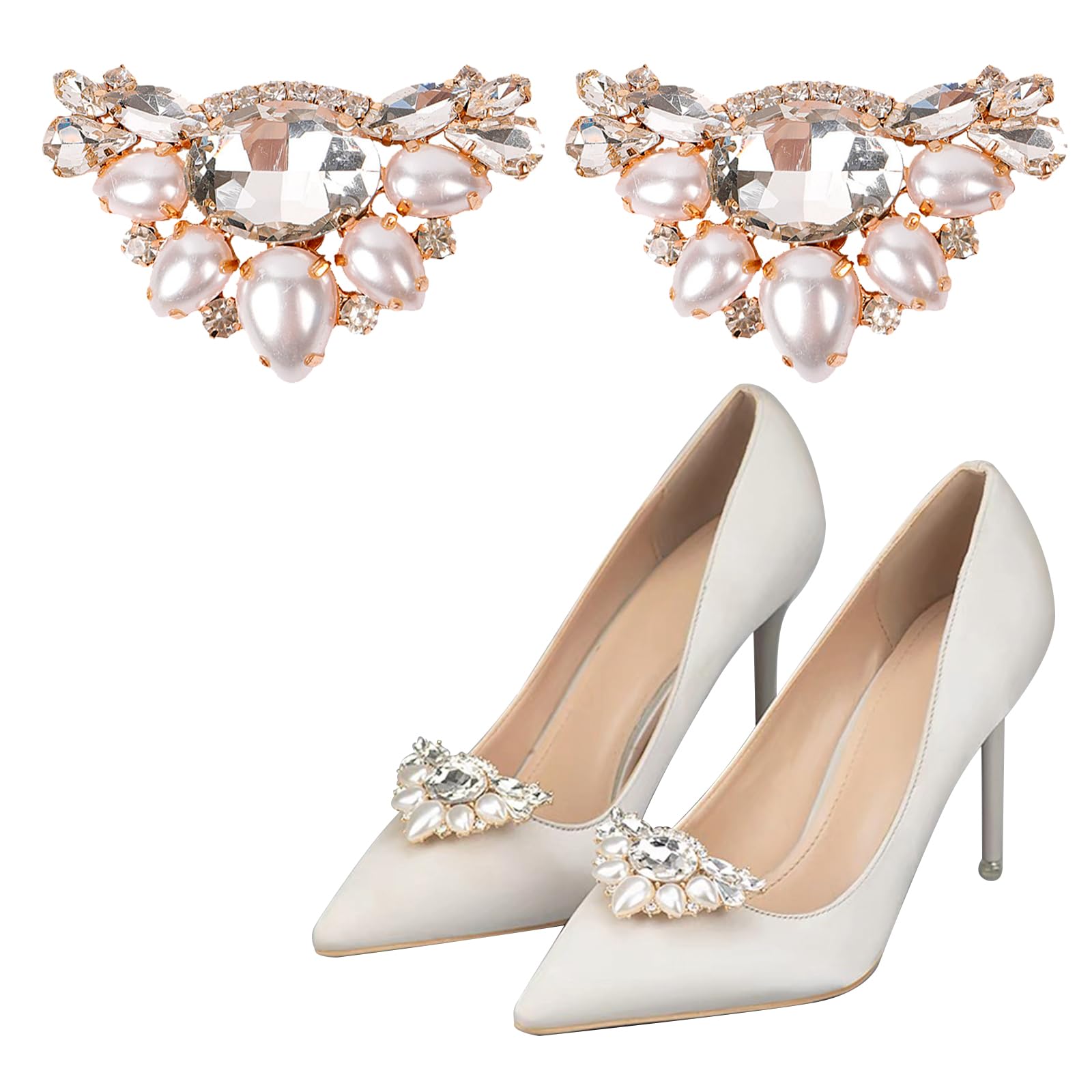 [ZHEJIA] シューズクリップ [1ペア] シューズアクセサリー パンプス 飾り パール クリスタル キラキラ おしゃれ 靴飾り 汎用性 耐久性 ワンタッチ着脱 取り外し可能 結婚式 パーティー
