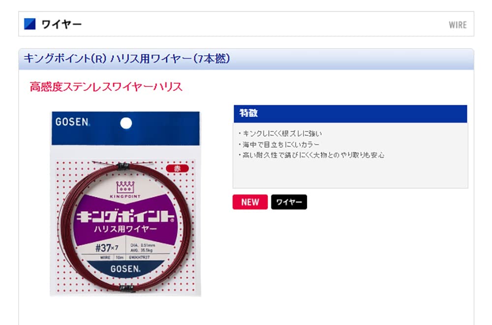 7本撚りの高感度ステンレスワイヤーハリス【キングポイント ハリス用ワイヤー】!