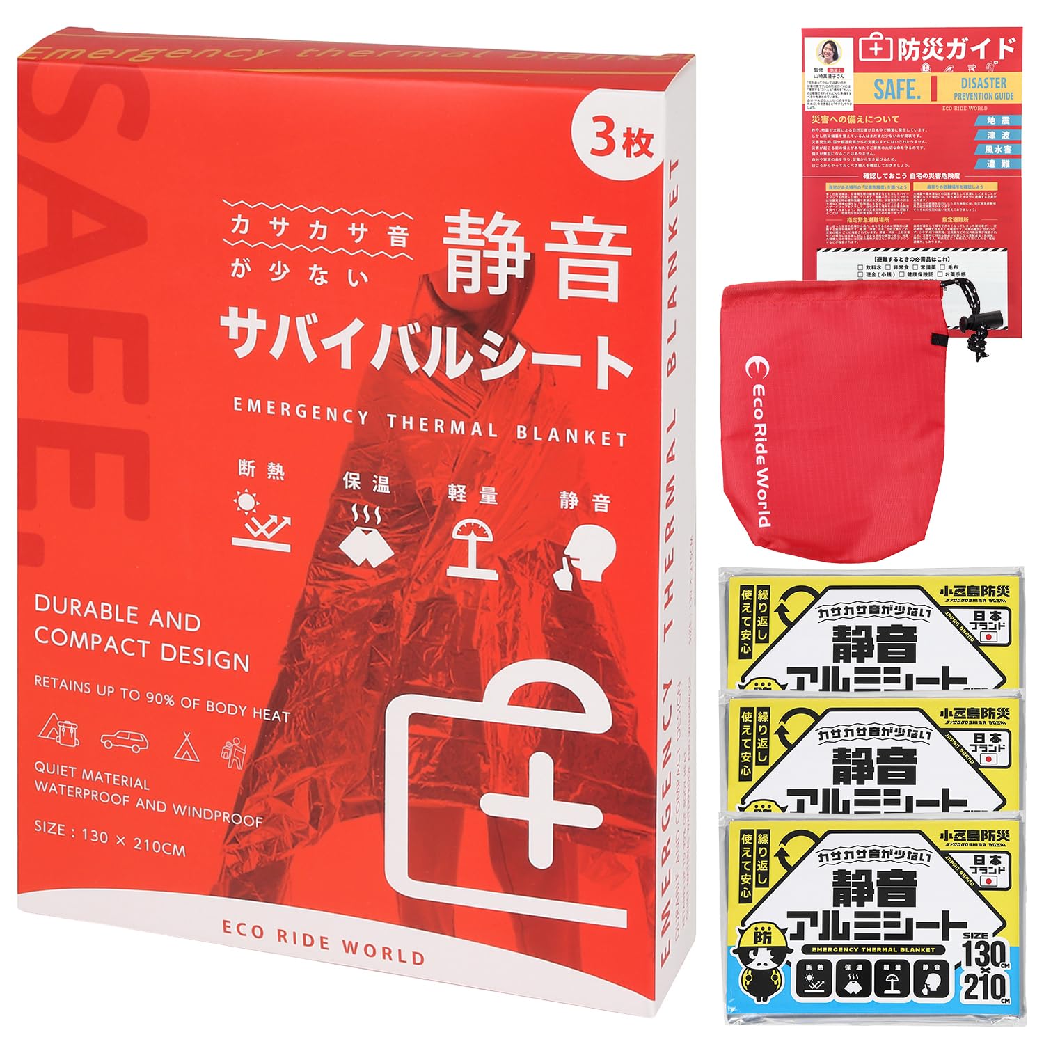 Eco Ride World アルミシート エマージェンシーシート カサカサ音が少ない 静音 ブランケット アルミブランケット サバイバルシート 備蓄 防災 保温 (3) sb_126-02