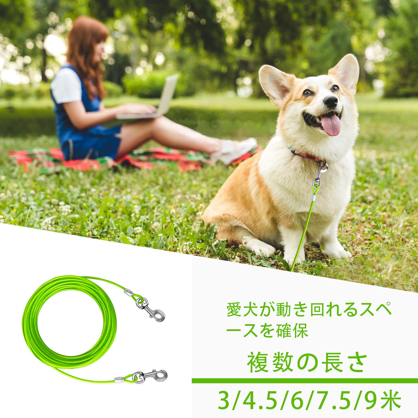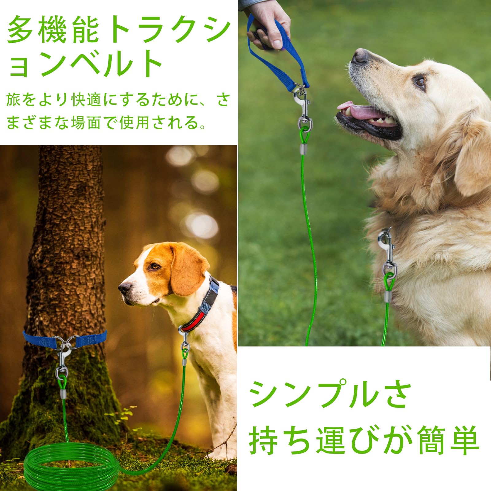 広い適用範囲:キャンプ、公園、中庭、庭などの屋外活動では、この犬用ケーブルを使ってペットを保護することができます。持ち運びに便利で、キャリングバッグに収納できます。