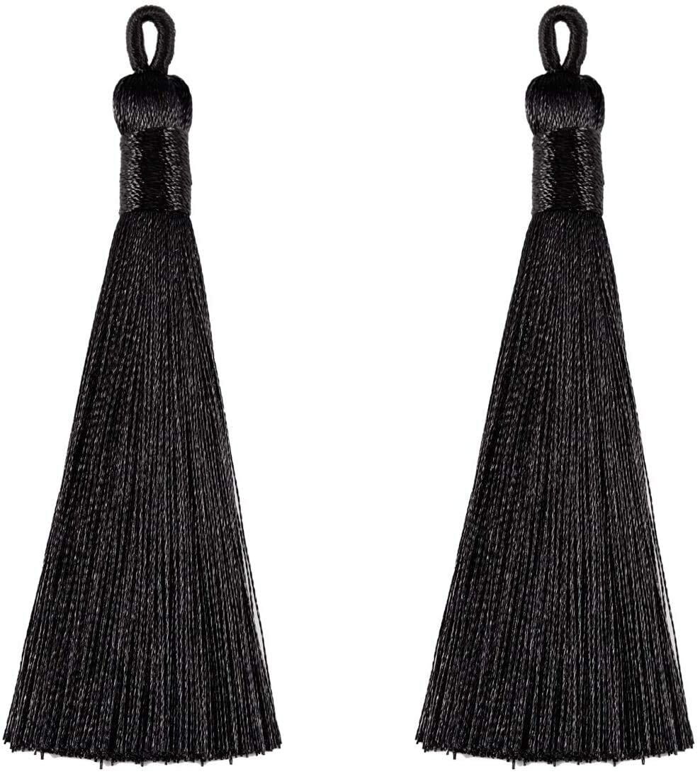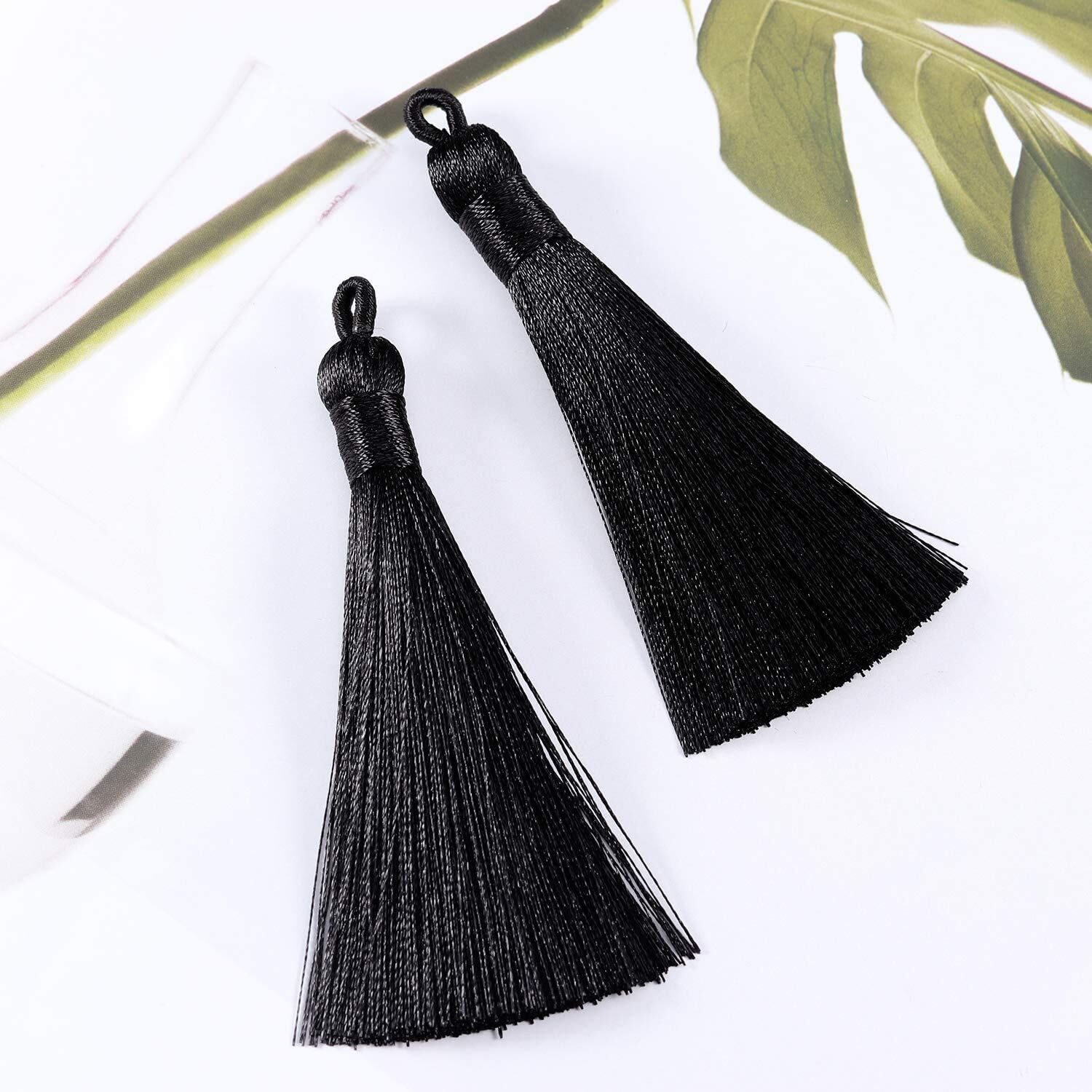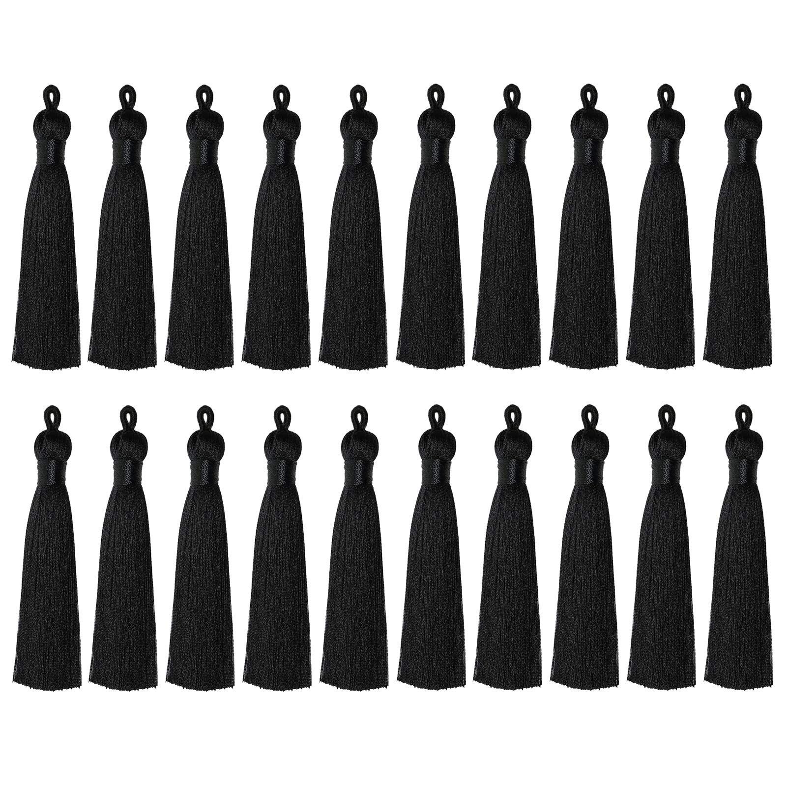 20本 光沢素材 タッセル 手芸 アクセサリーパーツ カーテン 房飾り フリンジ DIY クラフト 材料 手作り 雑貨 (ブラック)
