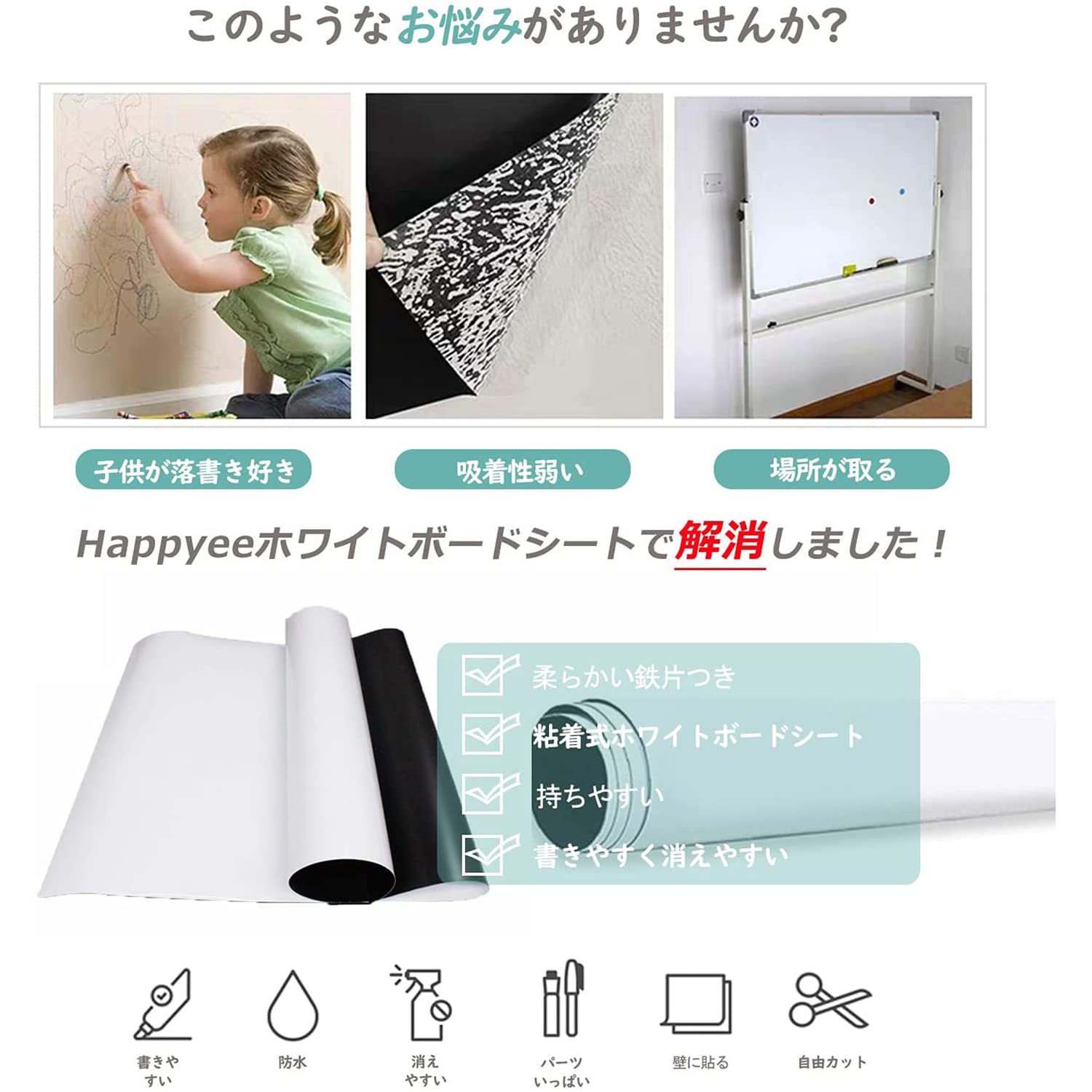 【書きやすい】ホワイトボード紙は耐水性に優れたPVC材質を採用し、表面は滑らかで、スムーズに書くことができます。また、ホワイドボードに記入後、長時間を経ても、痕跡を残さずに綺麗に拭きやすく、使い心地が良いです