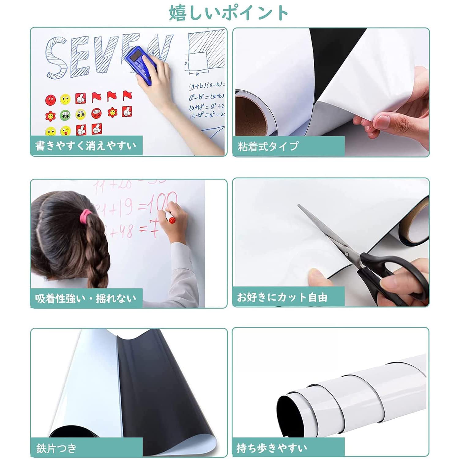 【マグネット対応】ホワイトボードシートはマグネットに対応でき、磁石でプリント用紙、事務所の予定表、ポスター、写真などをホワイトボードシートに簡単に引き付けられます