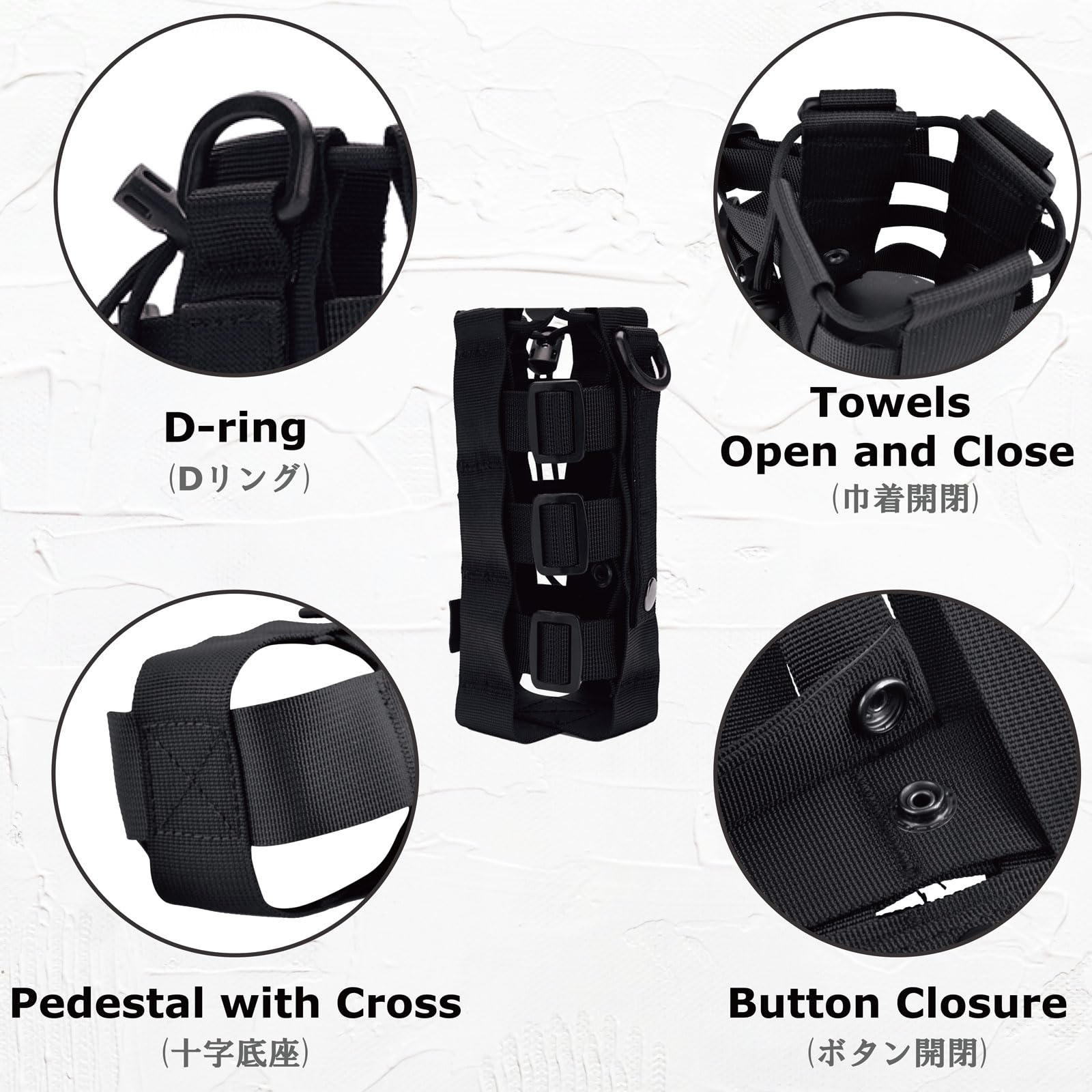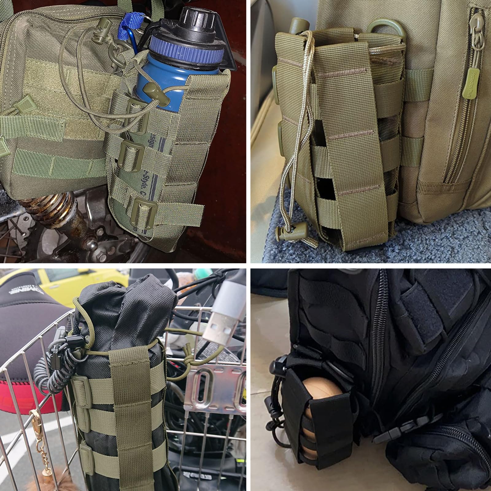 ? 【大活躍】水筒ポーチはバイクのキャリア、リュックに後付け、子供のランドセルに付けられます。普段使いから登山、徒歩、キャンプなどのアウトドアまで幅広く活躍します
