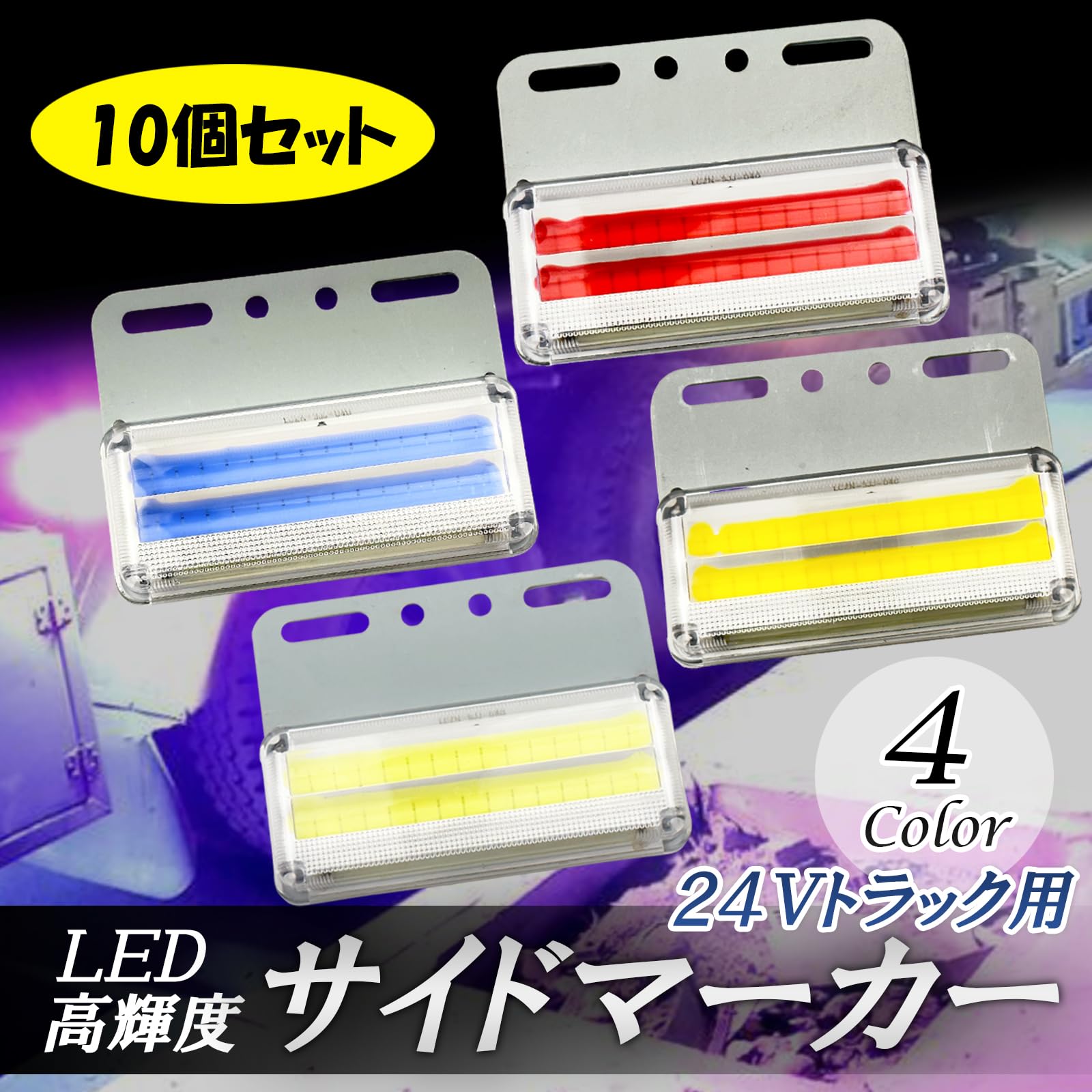 【種類・セット内容】超高輝度ダウンライトを搭載した24Vサイドマーカー10個セットを各ブルー・ホワイト・アンバー・レッドをご用意いたしました、ご要望によりお好きなお色をお選び下さいませ。