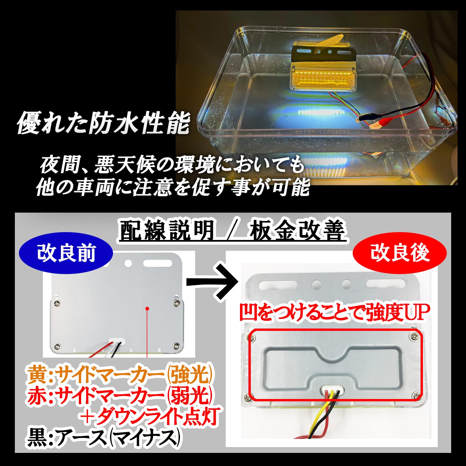 【 防水防塵仕様】HTharrosのサイド マーカー は防水処理・防塵仕様により長寿命化、雨水による浸水、塵埃による故障を防ぎます。