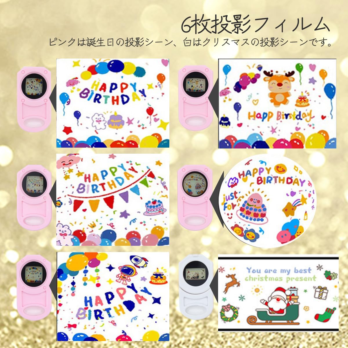 【新着】誕生日用プロジェクター 誕生日 飾り付け 誕生日バルーン 背景 パーティー クリスマス 飾り 6枚投影フィルム デコレーション プレゼント ギフト 贈り物 装飾 水晶玉 置物 多機能 日本語取扱説明書 | GIGATERA