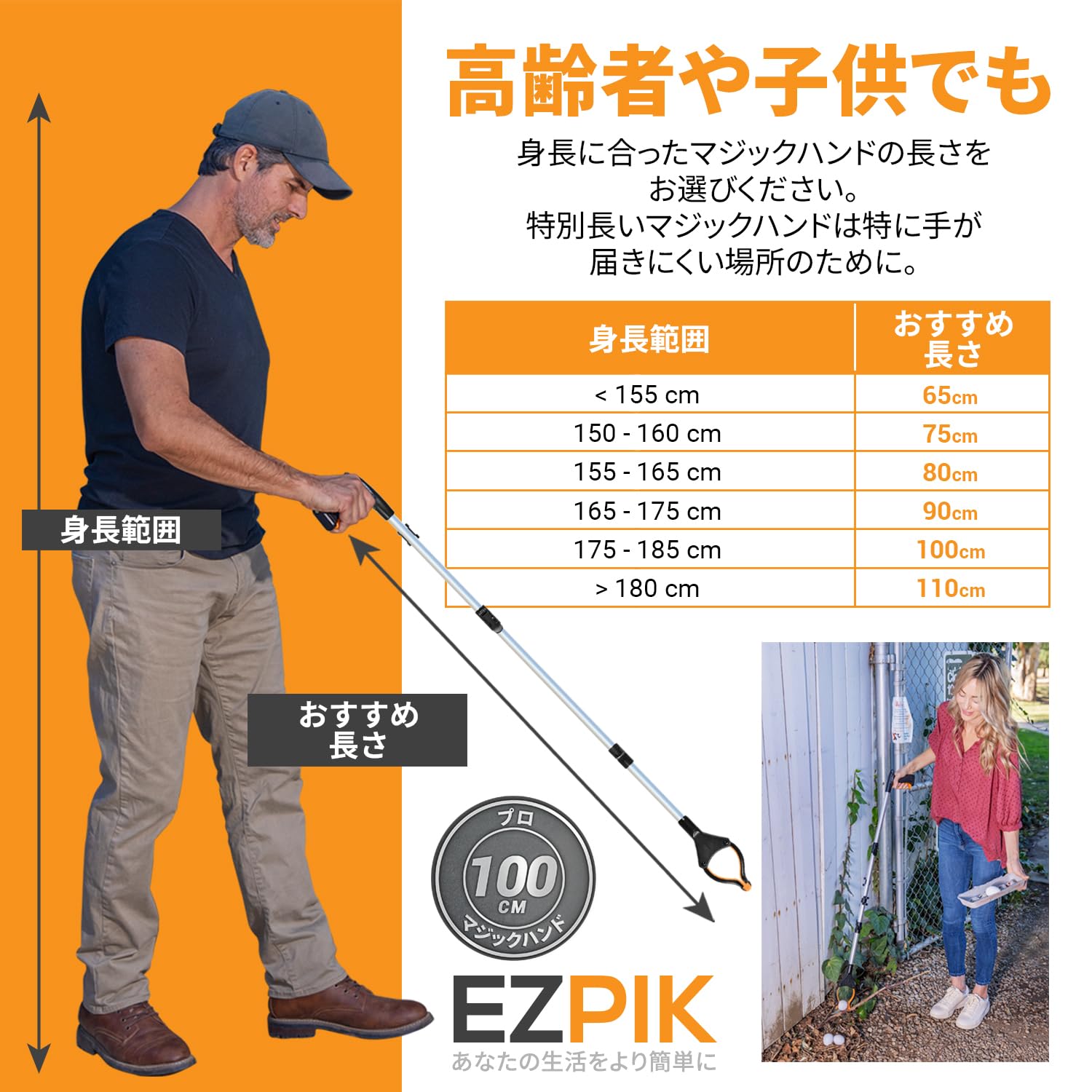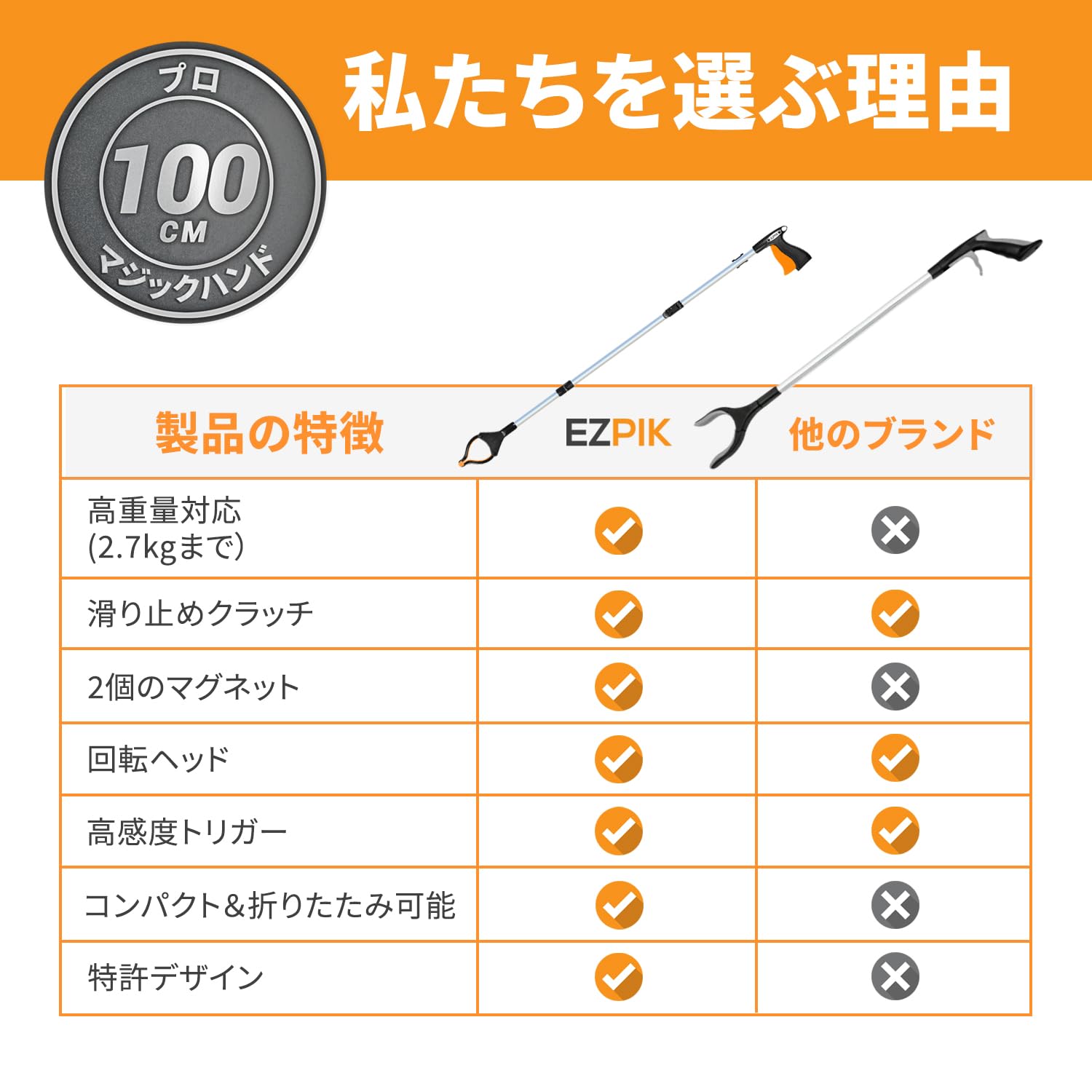 EZPIK(イージーピック)Pro マジック ハンド お助けハンド らくらくハンド つかみ棒 リーチャー 折り畳み 軽量 強力 マグネット付き ゴミ拾い トング ロング ショート 伸縮 介護用 高齢者 自助具 便利グッズ (シルバー・100cm・2パック)