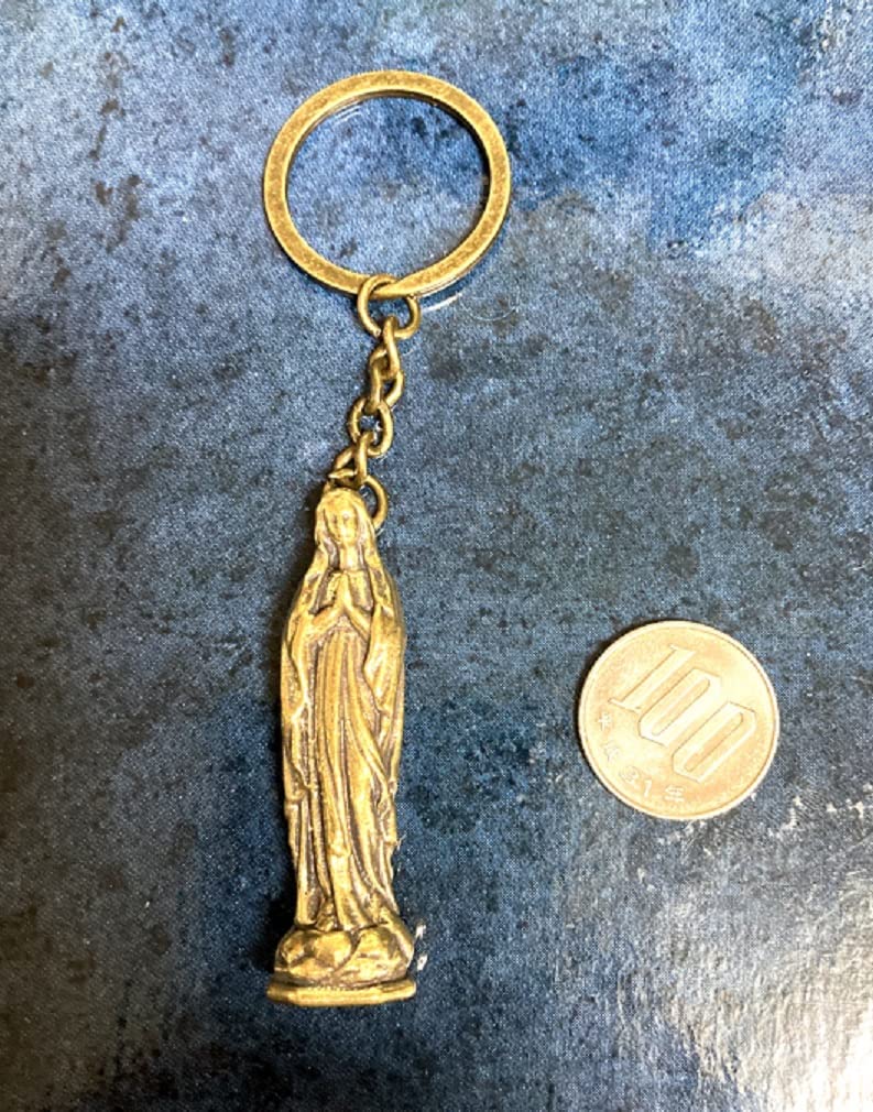 聖母マリア様をモチーフにした真鍮製のキーホルダー。聖母マリア様は神の子イエス・キリストの母であり、キリスト教において重要な聖人聖女の一人です