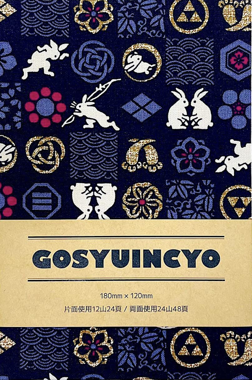 【サイズ】 タテ約18cm ×ヨコ約12cm×厚み 約1.5cm 市場では「大判」などと表記して販売されている使いやすい売れ筋のサイズです! 蛇腹タイプの24ページ(両面使いで48ページ) 【内容】 ◆御朱印帳 本体1冊 ◆手軽に貼れる表題シール2枚(御朱印帳の文字入り1枚・無地1枚)用途に合わせてお好きな物をどうぞ! 【和紙】 綺麗な仕上がりの御朱印帳蛇腹和紙を使用しております。 『墨が裏面に染み出ない御朱印帳』となっておりその品質や見た目のクオリティ・使い心地は抜群です。大変稀にですが蛇腹本紙に小さな黒い点がある事がございます。原紙の品質基準を満たした和紙ですが製造過程で発生するパルプ繊維や木くず・樹皮・黒点(夾雑物)は和紙製品の一部です。和紙の特徴でもありますので予めご了承下さい。 【その他】 ◆御朱印帳専門店うさぎ堂の商品は全て一冊ずつ手作りで作成されております ◆裁断により表紙柄の出方が一つずつ異なる場合があります ◆出来る限り本当の色合い・生地感を見て頂けるように撮影をしておりますが多少の色の誤差が出る可能性がありますので予めご了承下さい