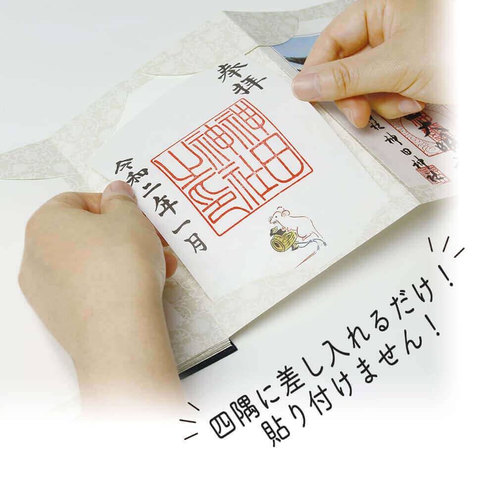 寺社を参拝するだけでなく、仏像鑑賞やパワースポット巡りの楽しみの一つ『御朱印集め』 大切な御朱印をいただくのに欠かせないのが『御集印帳』 参拝の際、あらかじめ用意されている『書き置きご朱印』の四隅をジャバラ式台紙に差し入れて保管することができるご朱印帳です。 クリアポケットやフィルムを剥がして使用するタイプとは違い環境に配慮した紙製で、ご朱印の持つ雰囲気をなるべく損なわないようにしました。 貼り付けないので入れ替えが自由自在で、倍サイズ(見開き)の『書き置きご朱印』も保管できます。 ジャバラが開いてしまわないように留めておくゴムバンドや裏表紙(両面とも)には拝観券などが収納できるポケットが付いています。 また、近年増えた登城の記念となる「ご城印(ごじょういん)」集めとしても使えます。 台紙の白い部分に記念スタンプの押印やペンなどで書き込んだりもできます。是非、お寺、神社巡りに是非ご活用下さいませ。寺社仏閣を訪れる際の必需品であり、その日の思い出や感じたことを記録する特別なアイテムです。美しいデザインの表紙は、手に取るたびに新たなインスピレーションを与えてくれます。
