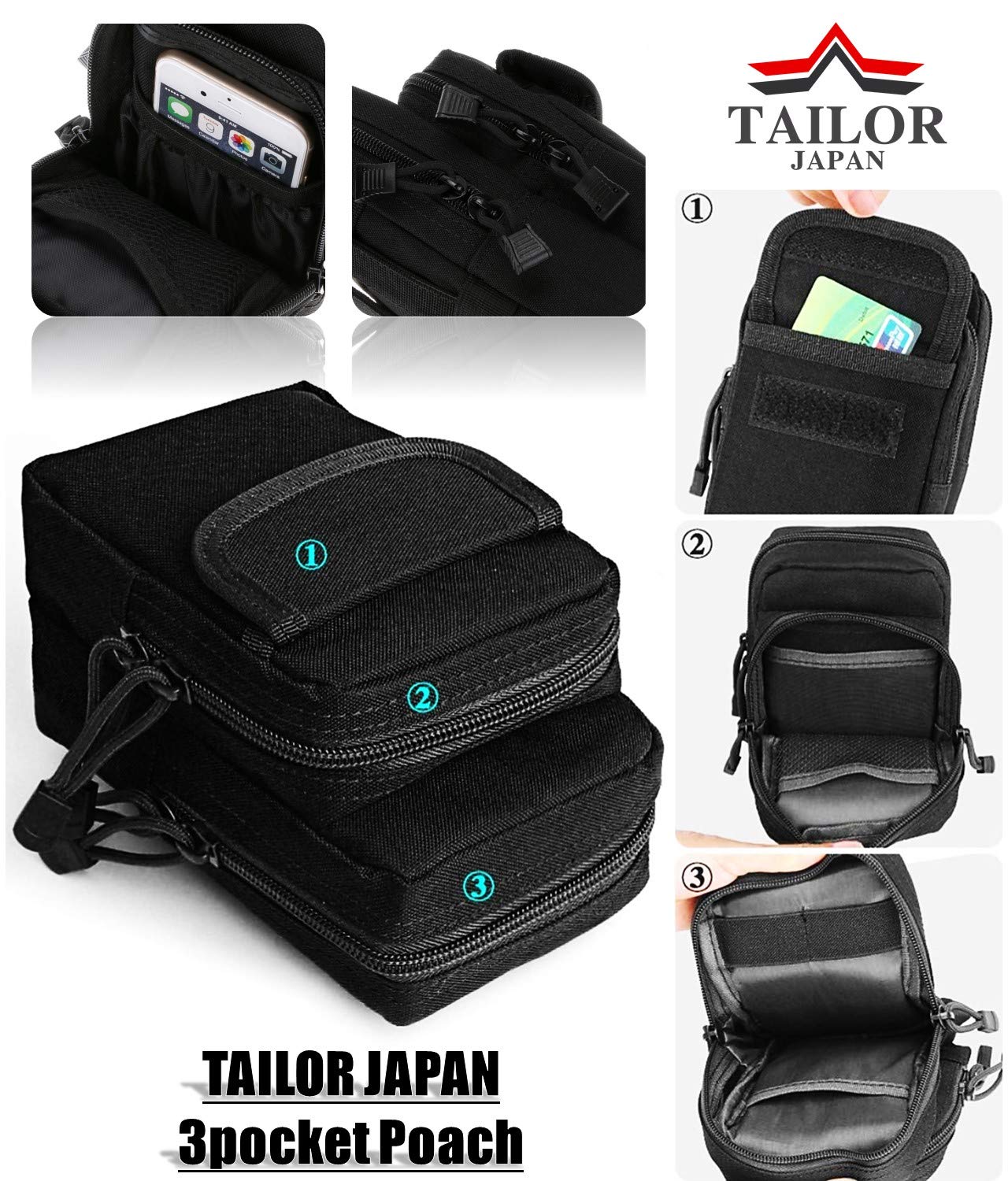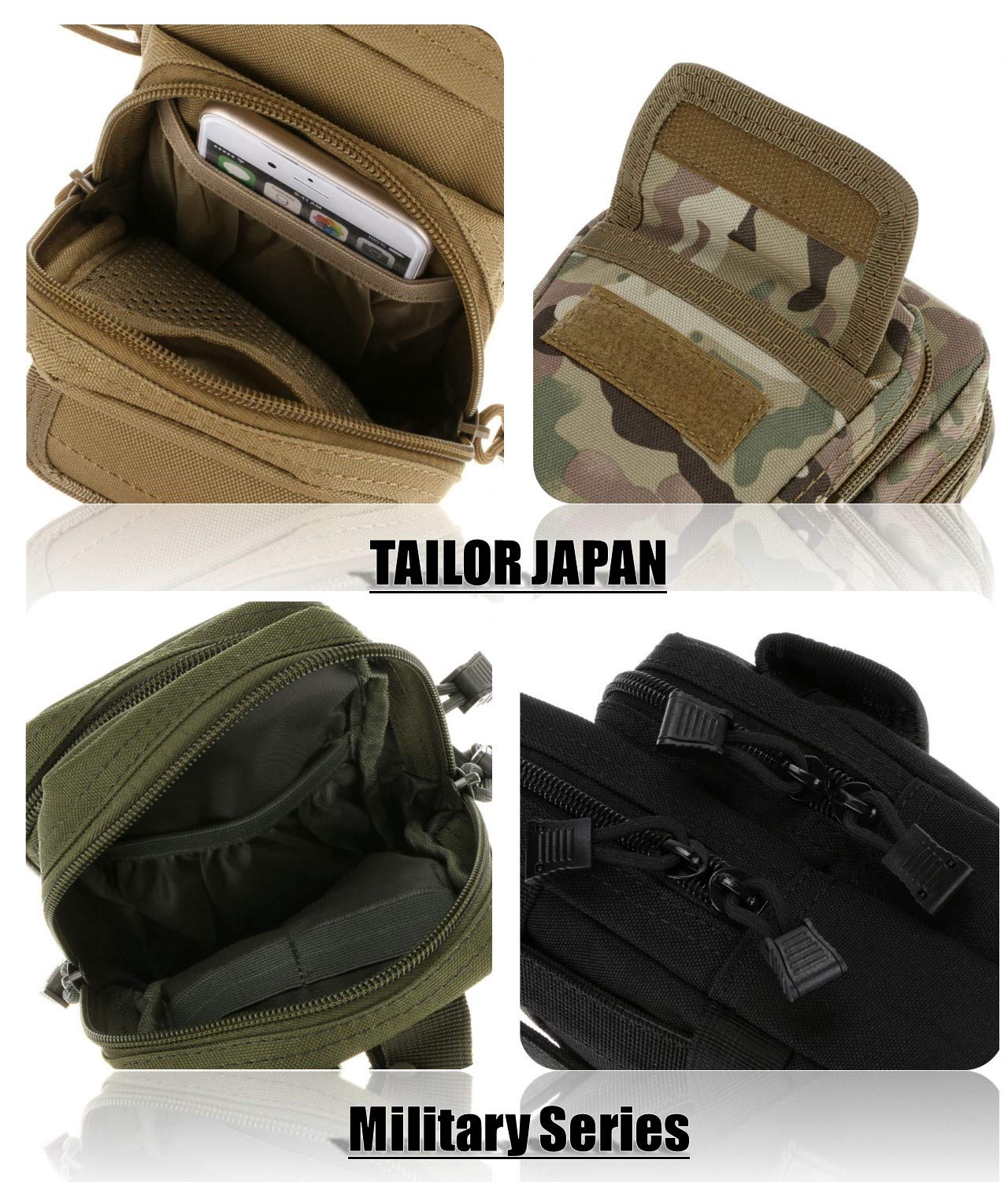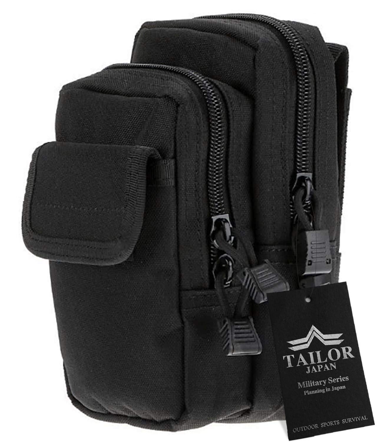 【TAILOR JAPAN】タクティカルポーチ ミリタリーポーチ スマホ サバゲー モール タクティカルバッグ ミリタリーバッグ アウトドア (ブラック)