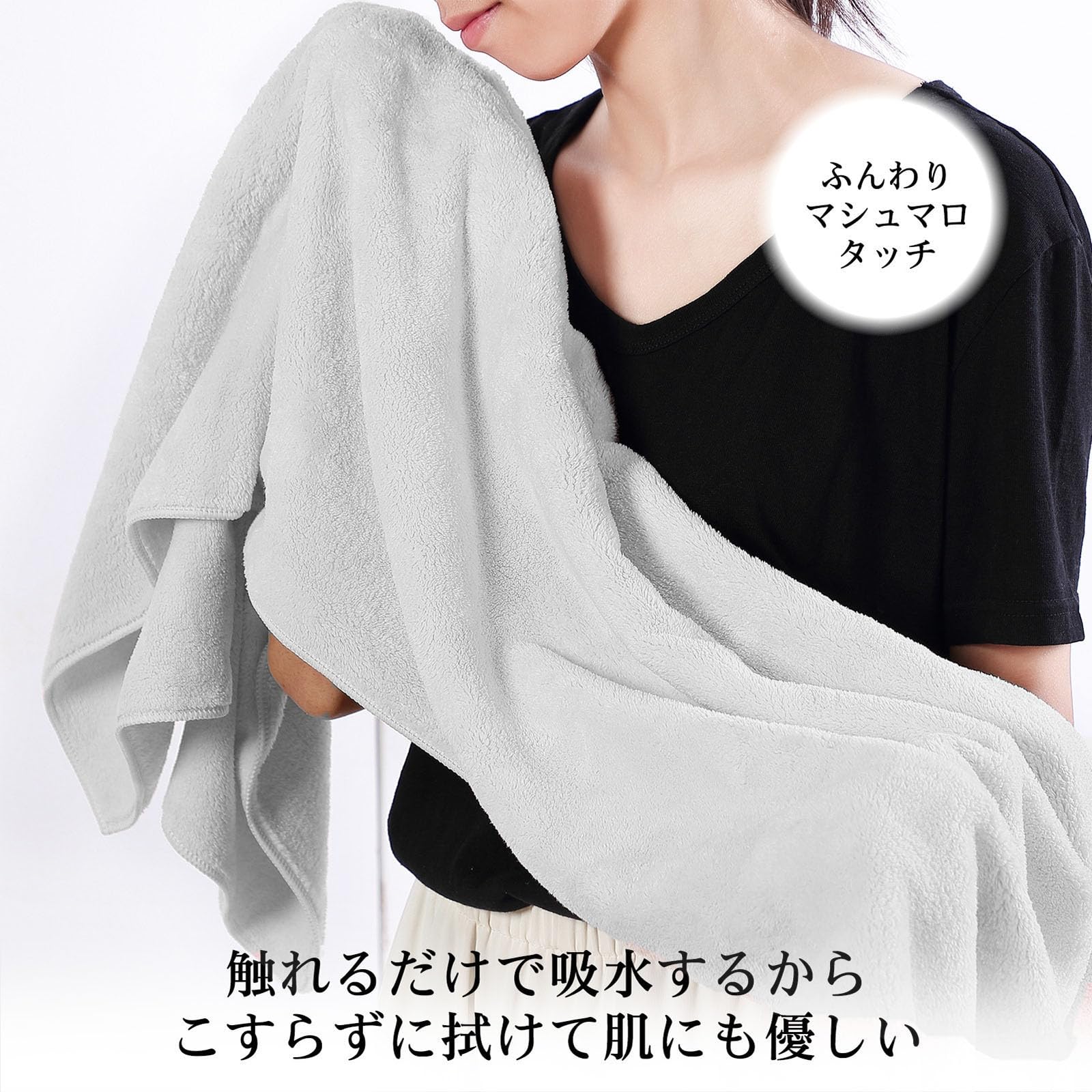 【吸水力】綿の約4倍吸水で、ふわふわ速乾バスタオル