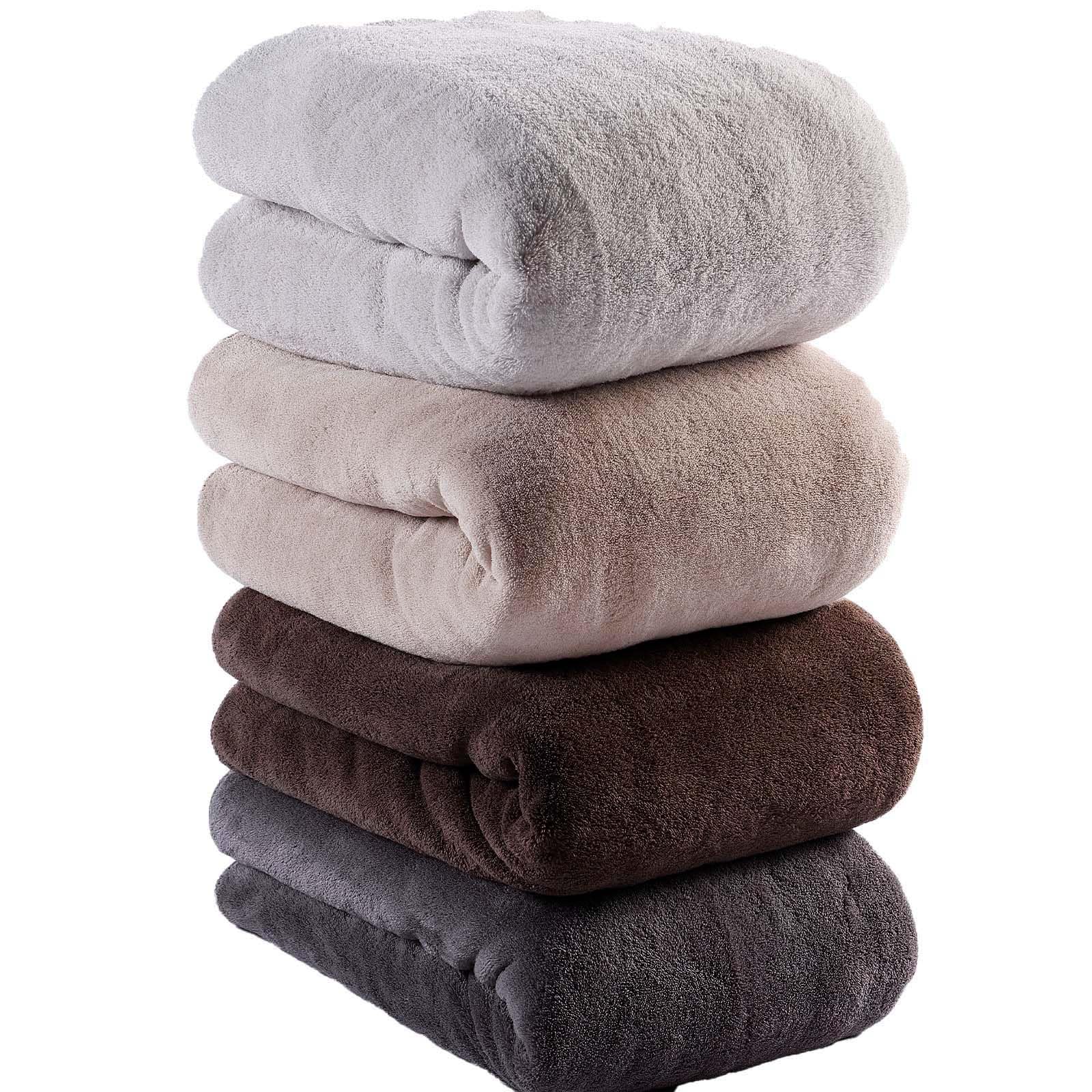 Goppo バスタオル 速乾 マイクロファイバー ホテル仕様 大判 厚手【70x140cm 4色4枚セット】 強い吸水 ふわふわ 肌触り お風呂上がり耐久性 バス用品(ライトグレー、茶褐色、モカブラウン、グレー)