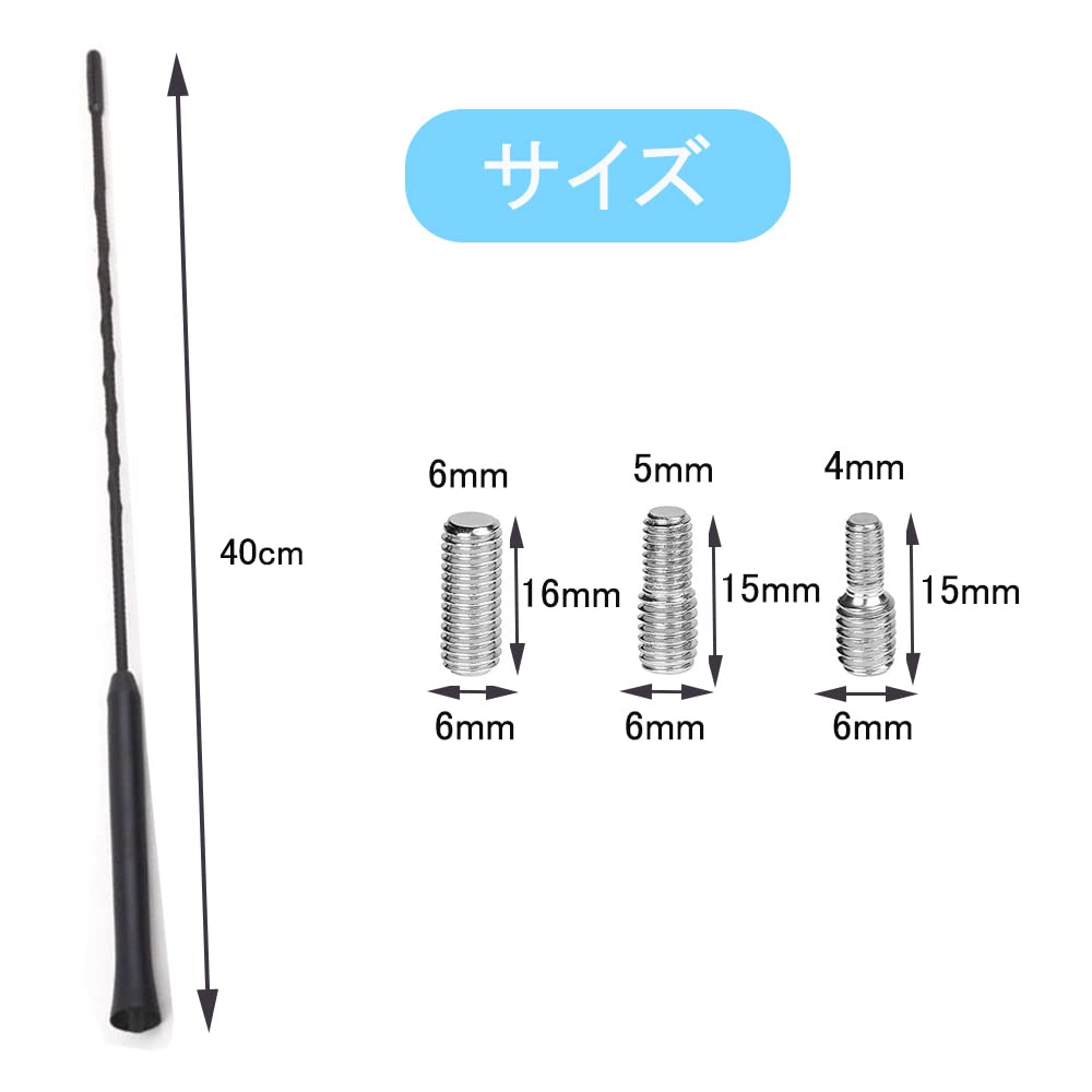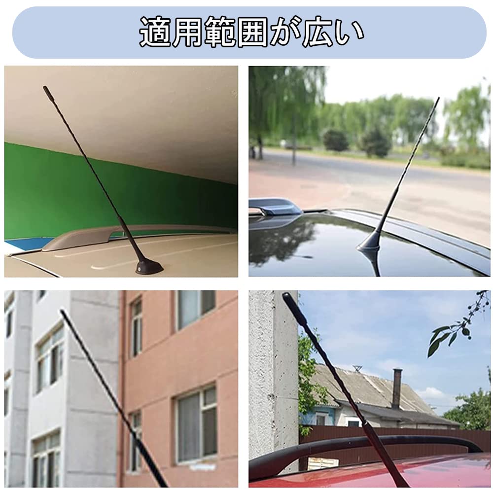 LIKENNY カーラジオアンテナ 自動車アンテナ ルーフアンテナ ラジオアンテナ AM/FM ショートアンテナ (ブラック/汎用)全長16インチ 三つサイズのネジ付き