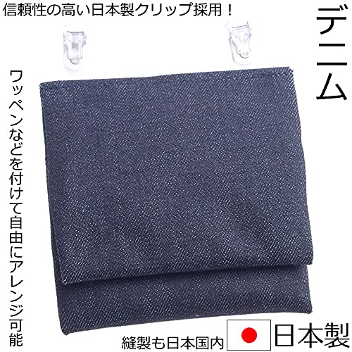 デニムなので丈夫な作りとなっています。 安心の日本国内で縫製しクリップも信頼性の高い日本製です。
