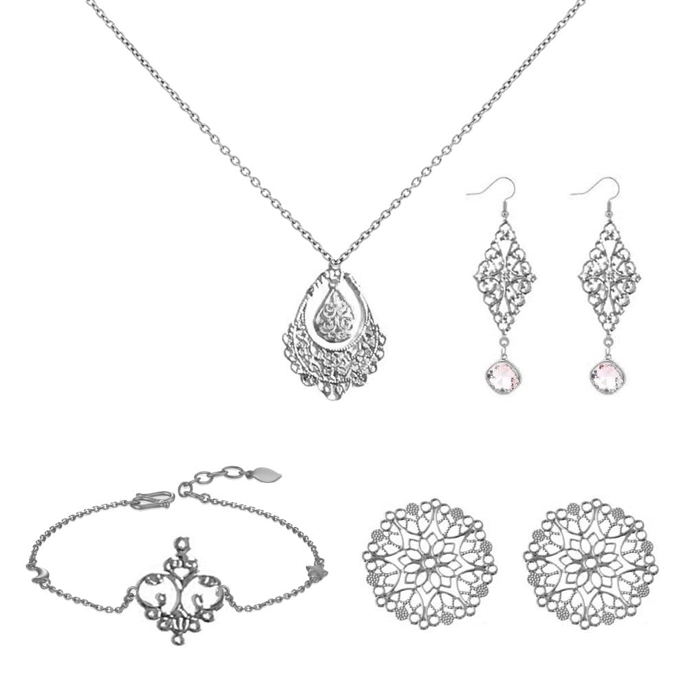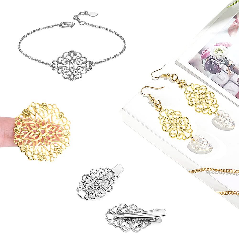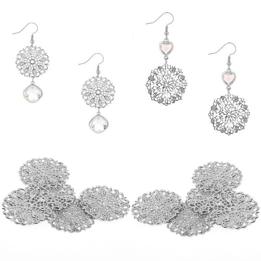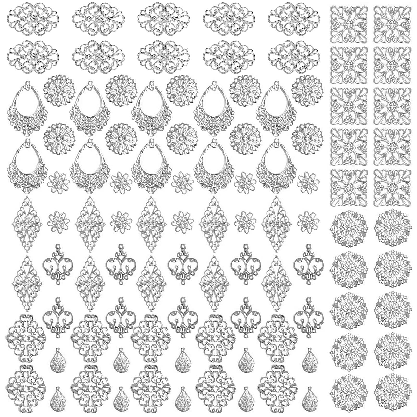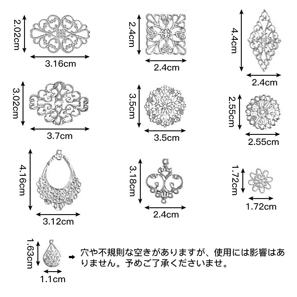 【数量限】サムコス 約100個セット 透かし パーツ シルバー 四角 三角 花 月 雫 DIY ハンドメイド アクセサリー 金具 素材 ピアス イヤリング かんざし ビジュー 台座 | GIGATERA