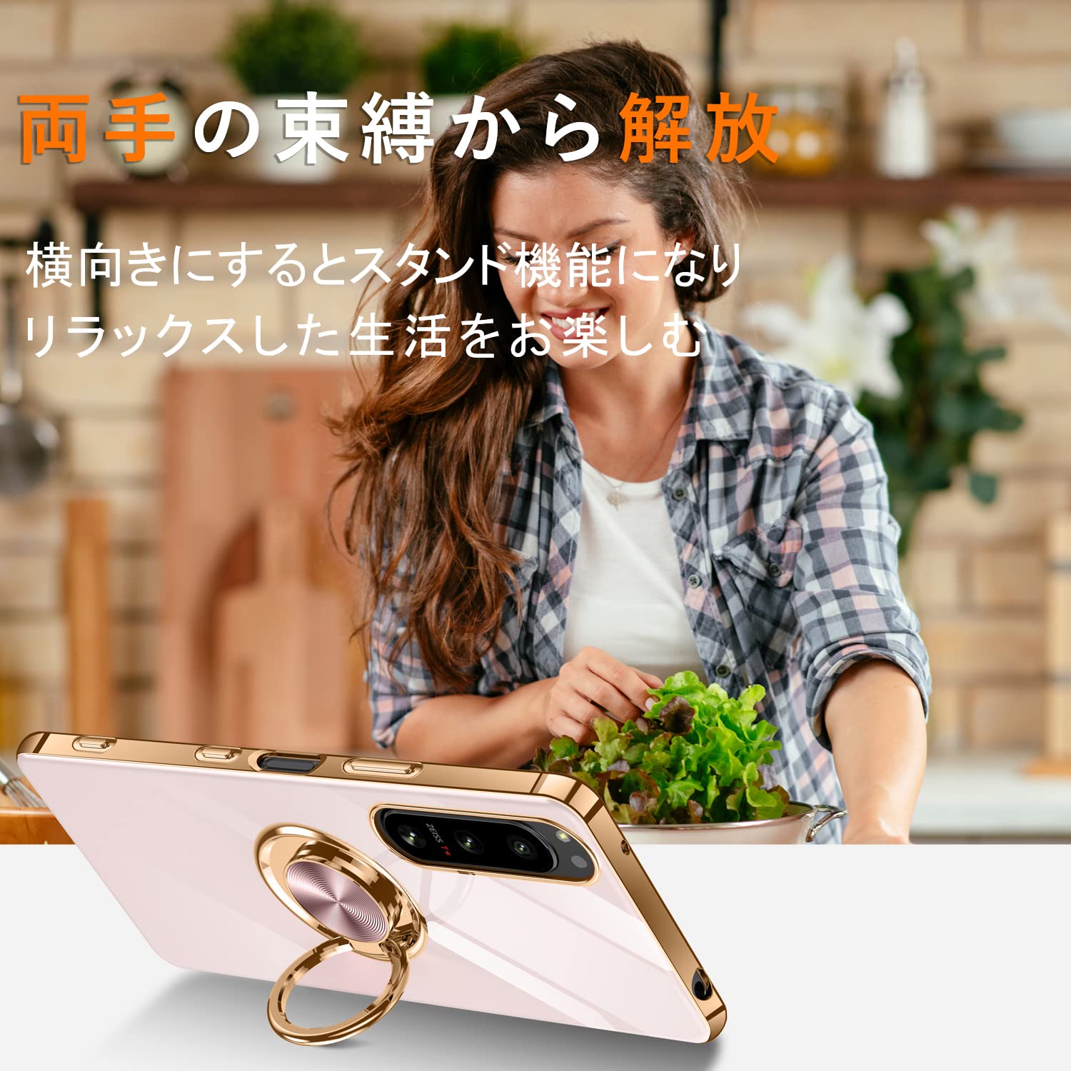 「リング付き・スタンド機能」360°回転できるこのリングは、テーブルに置くだけスタンドに変わり、ちょうど良くスマホをしっかりホールドし、普段は指輪としても活用、不意に落ちる心配もありません。
