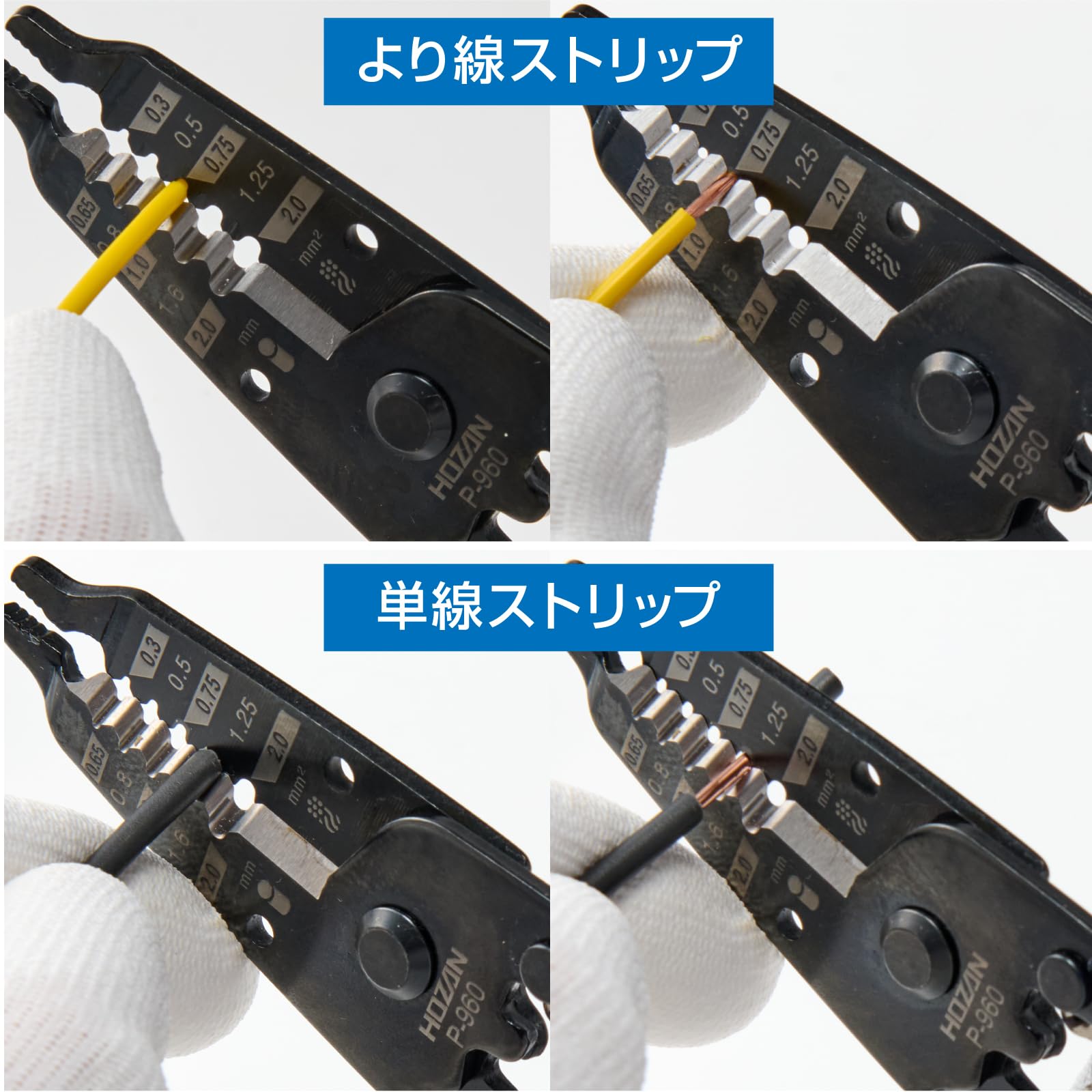 【特価】ホーザン(HOZAN) ワイヤーストリッパー ミリサイズ線用 全長163mm 重量80g こだわりのストッパー付 P-960