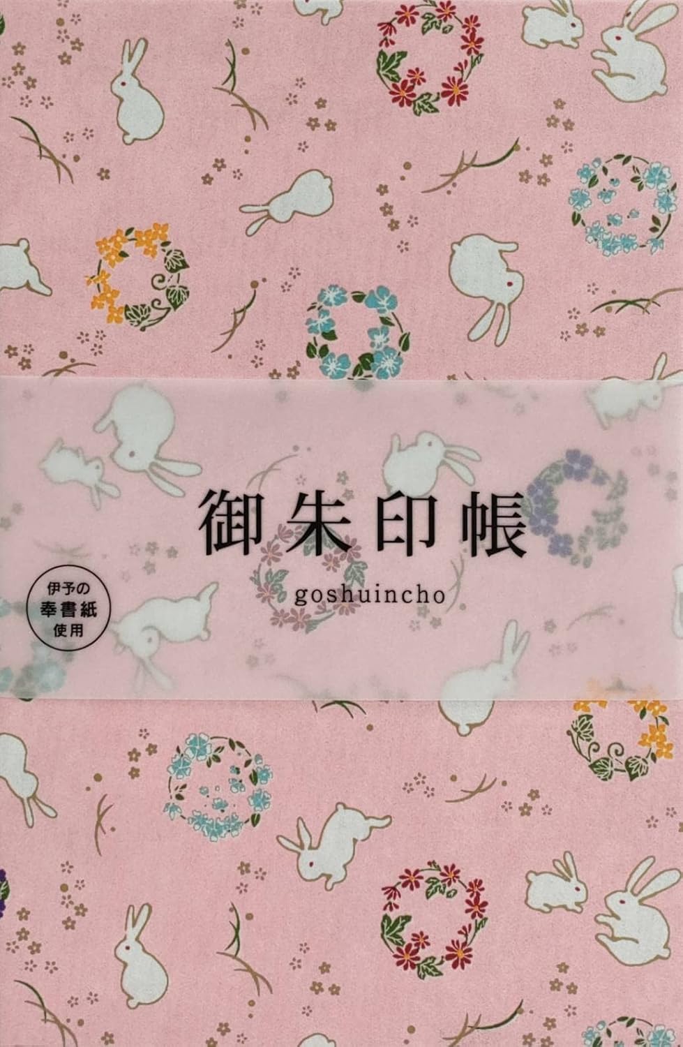 (Bridgehappy) 御朱印帳 御城印 集印帳 御朱印 大判 182×121mm 蛇腹 両面48頁 (ウサギと花)