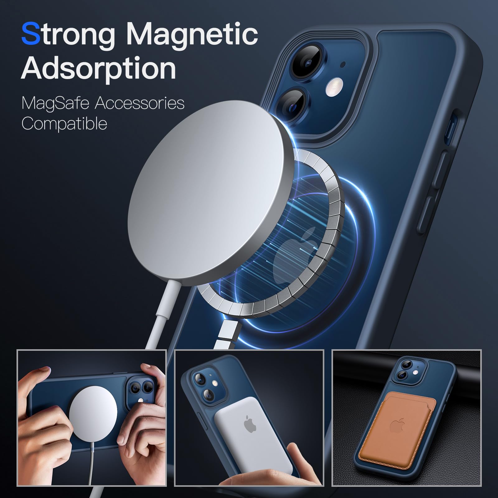 【在庫処分】JETech iPhone 12/12 Pro 6.1インチ用 マグネット ケース MagSafeに対応 半透明のマット背面 薄型 耐衝撃 カバー (ストームブルー) | GIGATERA