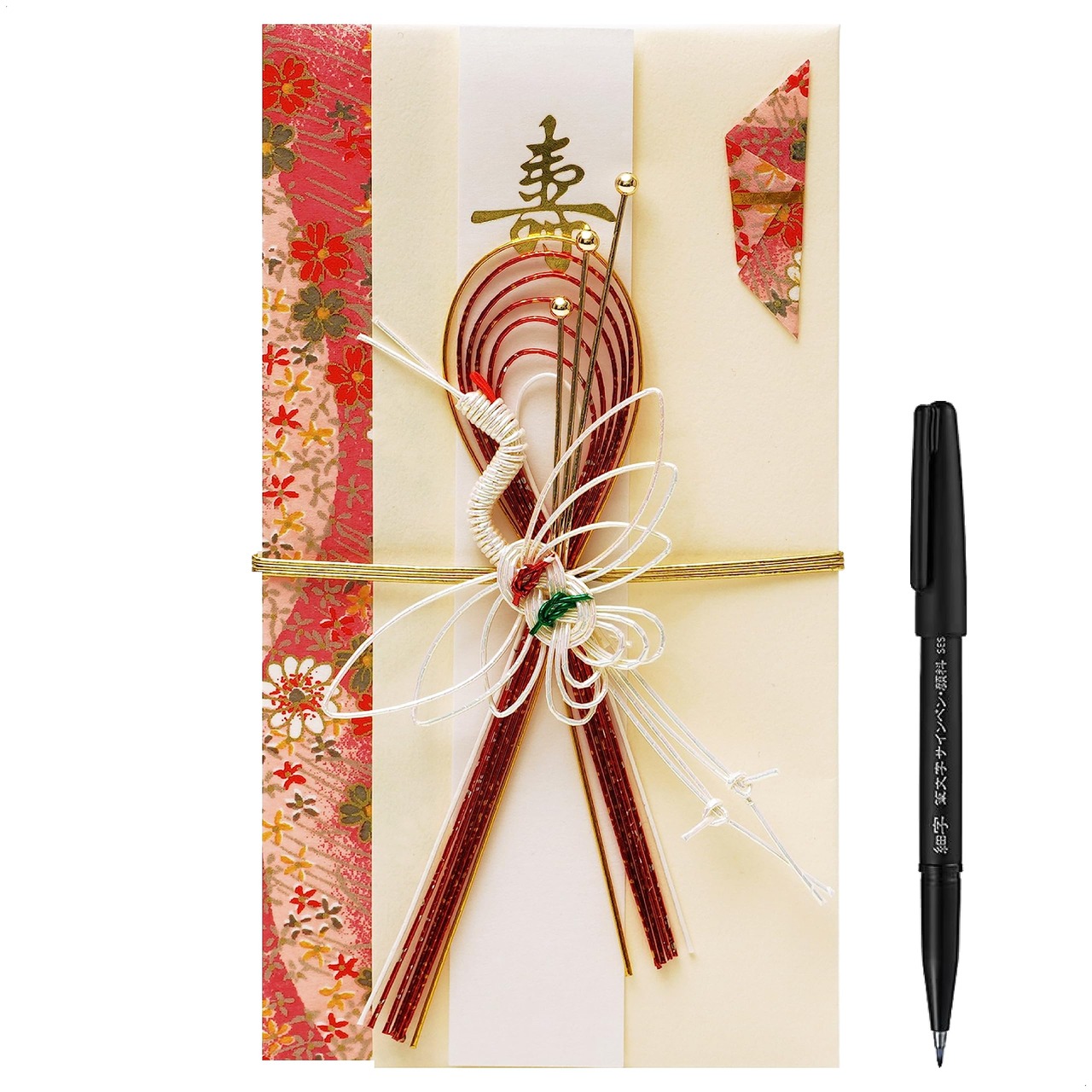 【書きやすい】ご祝儀袋(のし袋)にはご祝儀を入れる「内袋」、お名前を書く「短冊」が複数、また細くて書きやすいぺんてるの「筆ペン」が入っていて、金額やお名前がすぐに書けるようになっています。